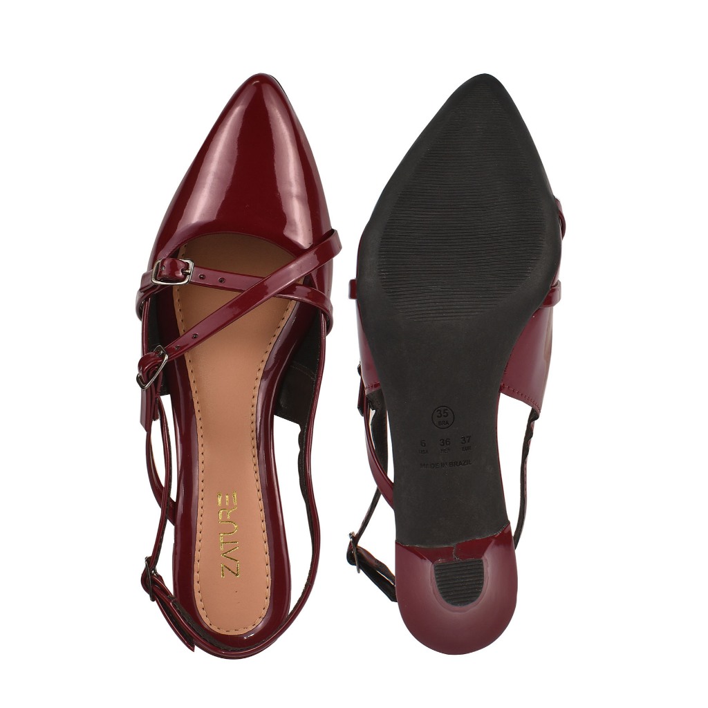 Sapato Feminino Scarpin Social Slingback Verniz Salto Fino Médio Bico Fino Retrô Estiloso Moderno