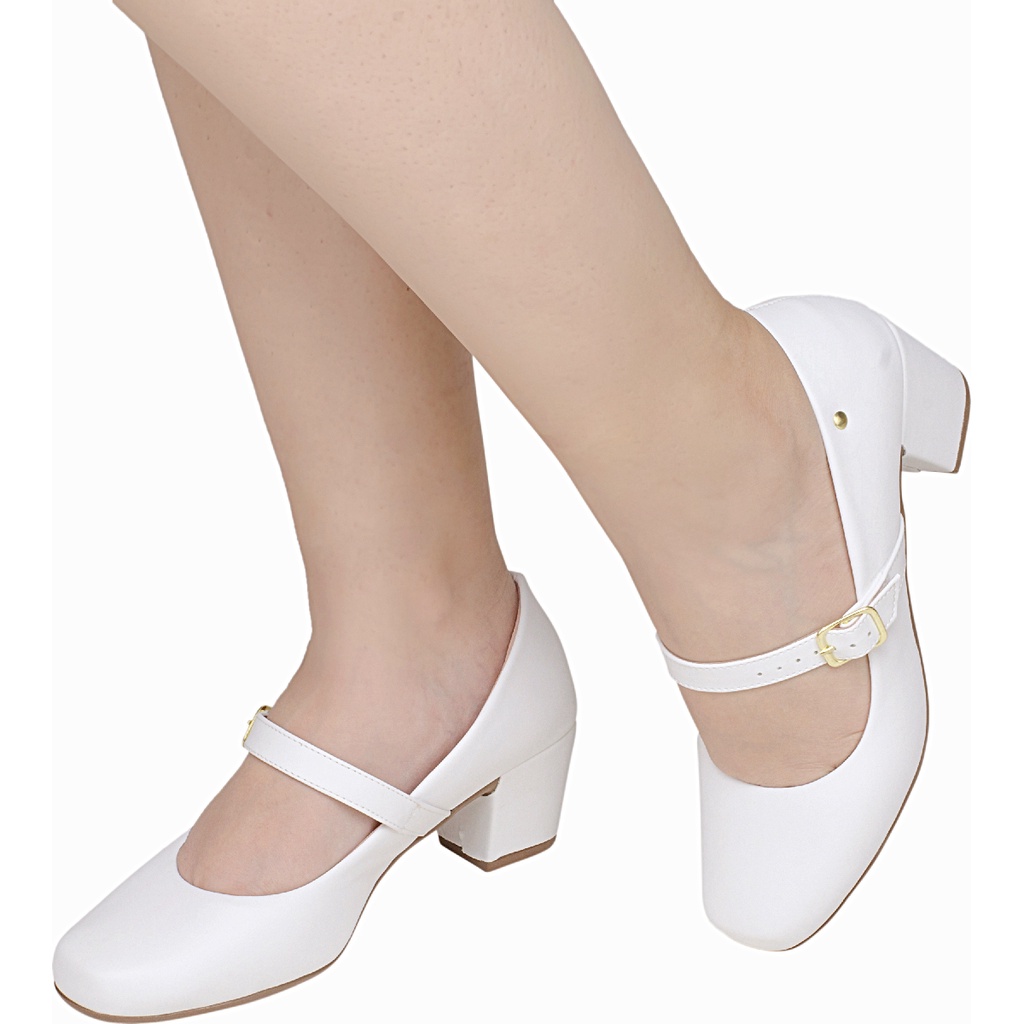 Sapato feminino Scarpin Boneca Lóris Salto Baixo Dança Confort Festa 6484