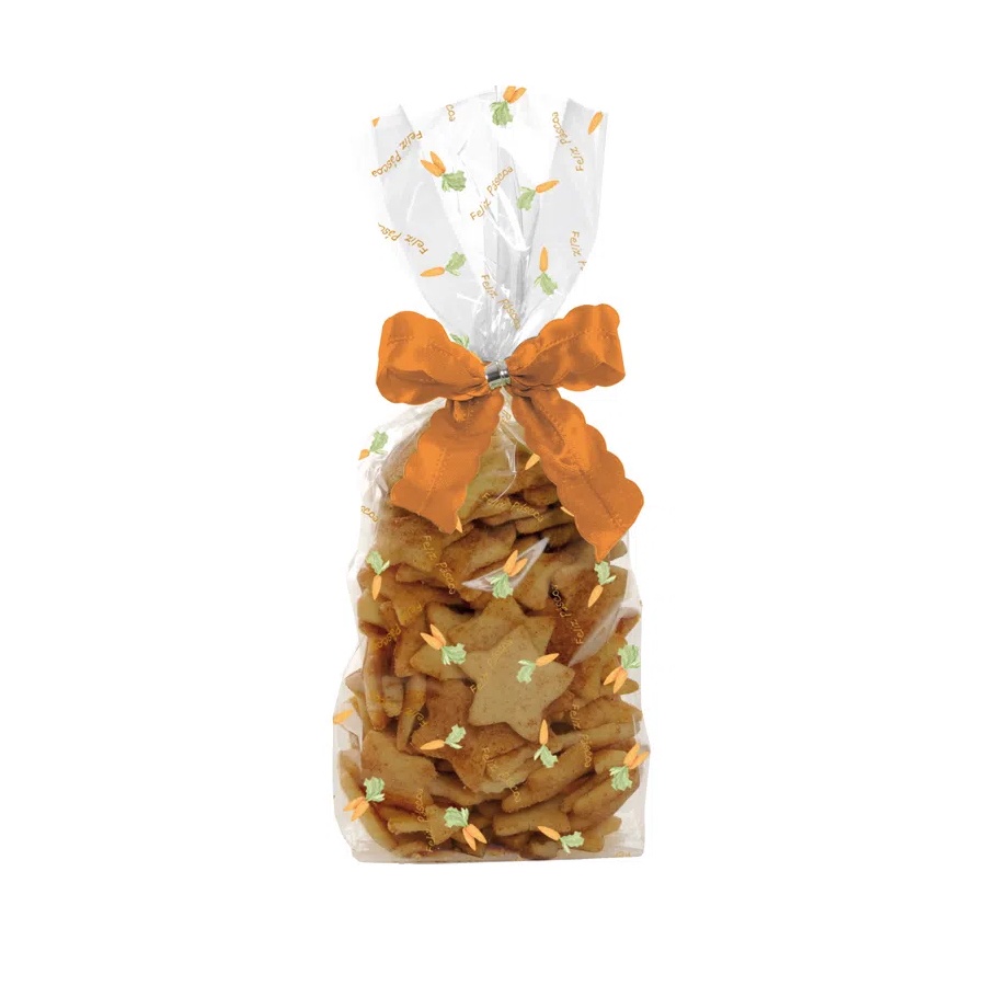 Saquinho Fundo Quadrado Cenourinha Transparente - 7,5 x 25,5 + 2,1 cm - 25 unidades - Cromus Páscoa - Rizzo