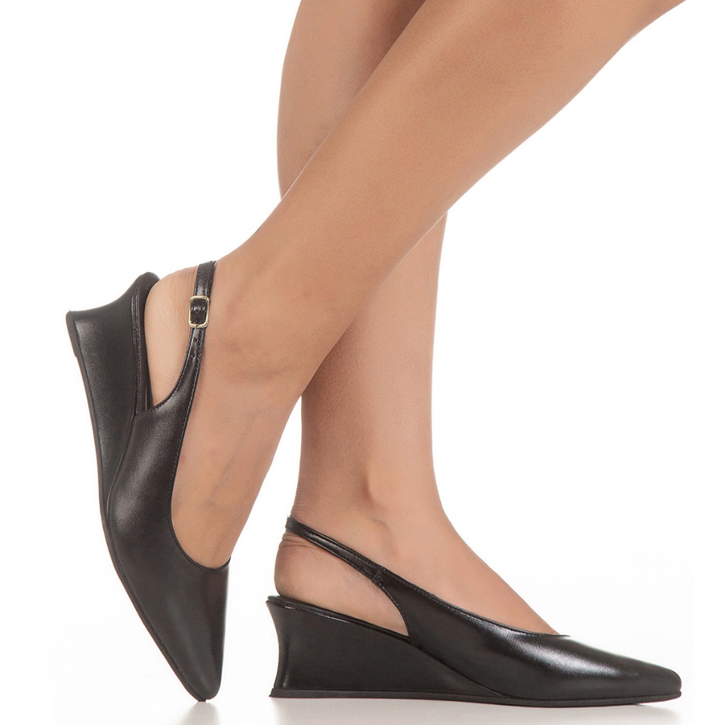 Scarpin Feminino Slingback Anabela Bico Fino Fivela Lateral Salto Cunha Baixo Elegante Loren GiGiL