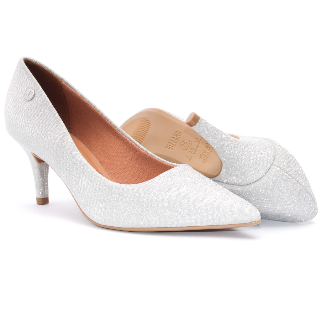Scarpin Vizzano Feminino Salto Baixo Fino Macio Original 1185 Prata