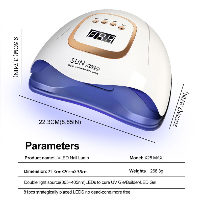 Secador De Unhas 380W De Gel Led/uv X25 Luz Azul Lâmpada 81LED
