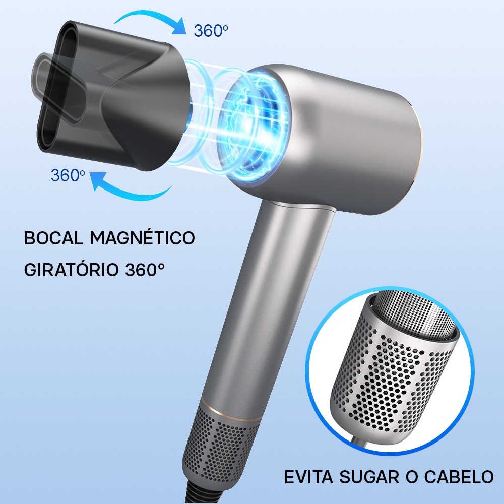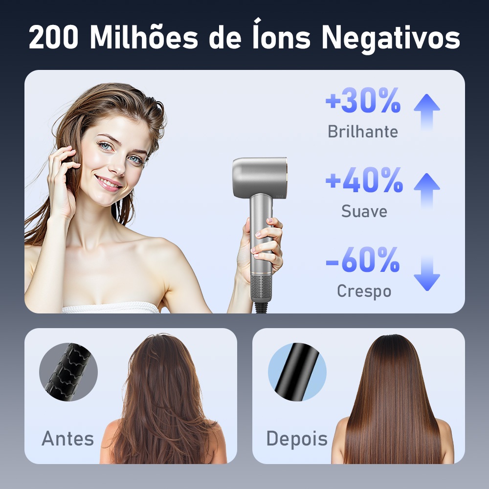 Secador de Cabelo - Baixo Ruído, Íons Negativos,Motor Brushless de Alta Velocidade Secagem Rápida