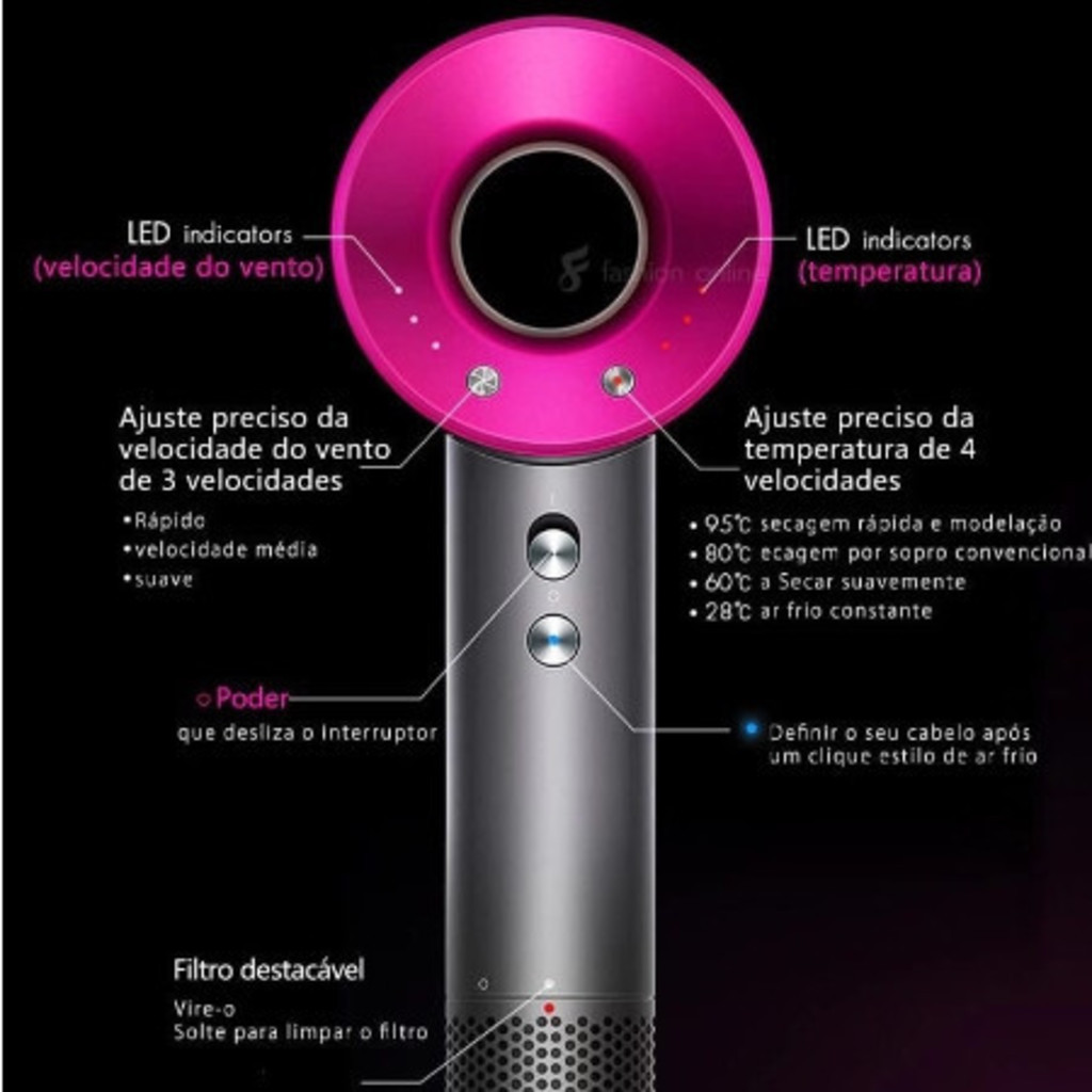Secador de Cabelo Iônico Secagem Rápida Ar Quente/Frio 110v e vem um Bocal de modelagem