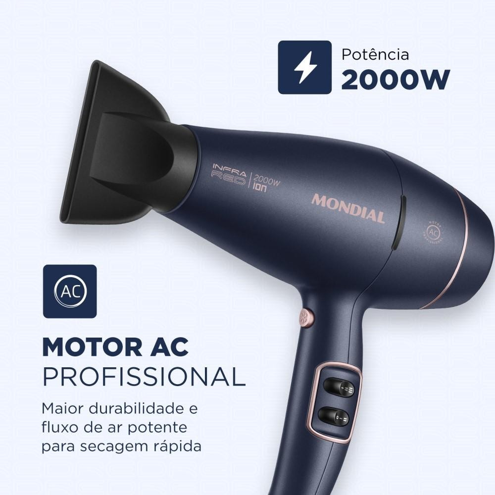 Secador de Cabelo Infrared Mondial 2000W SCP-01-IR Azul Rose 127V