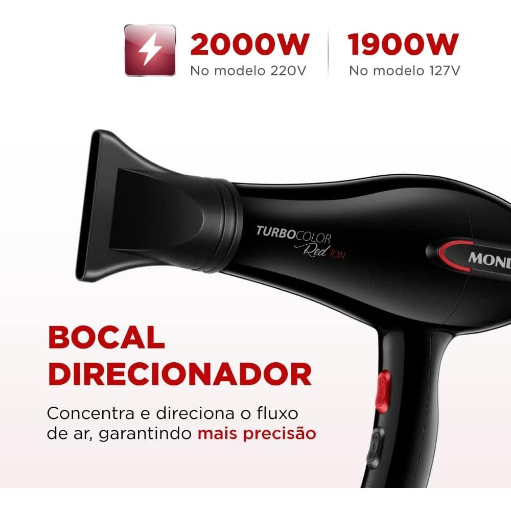 Secador de Cabelo Mondial Turbo Preto/Vermelho 1900W 127V - SC-41