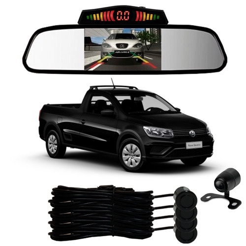 Sensor De Ré + Espelho Camera Ré Vw Saveiro Preto