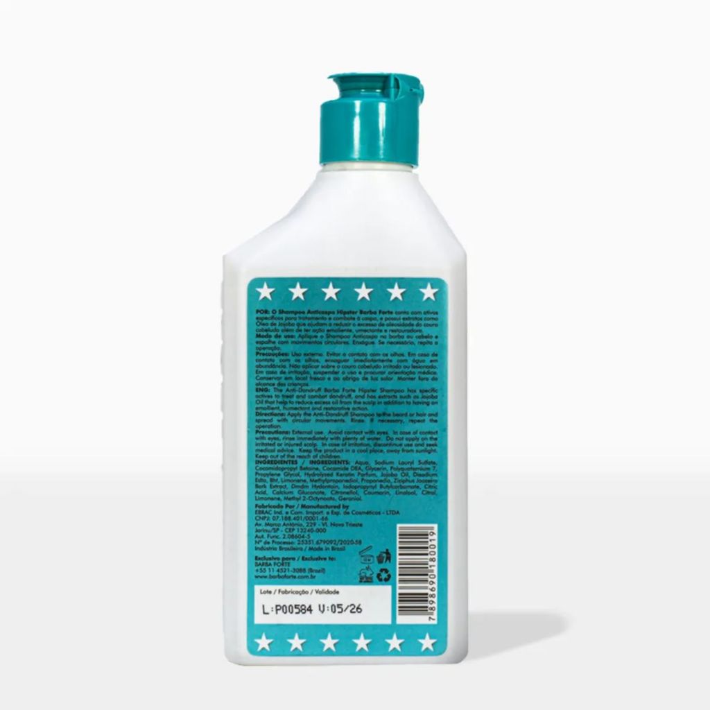 Shampoo Anticaspa Hipster Barba e Cabelo 250ml Controle da Caspa e Cuidado Completo - Barba Forte