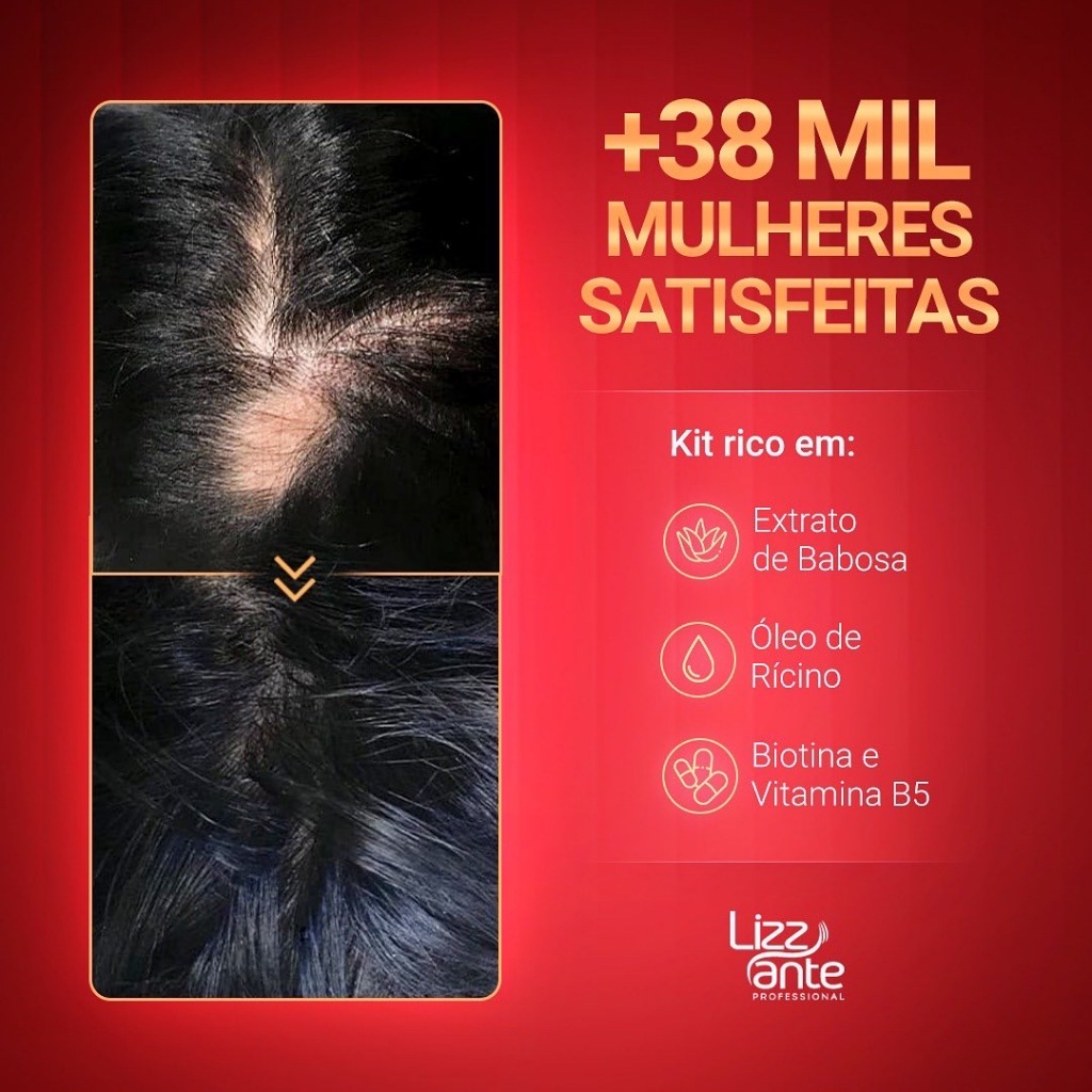 Shampoo Condicionador e Mascara SOS Crescimento Combate a Queda de Cabelo Fortalecimento Capilar Preenche Falhas Aumenta o volume dos Cabelos Hidratação Maciez e Brilho Lizz ante Professional