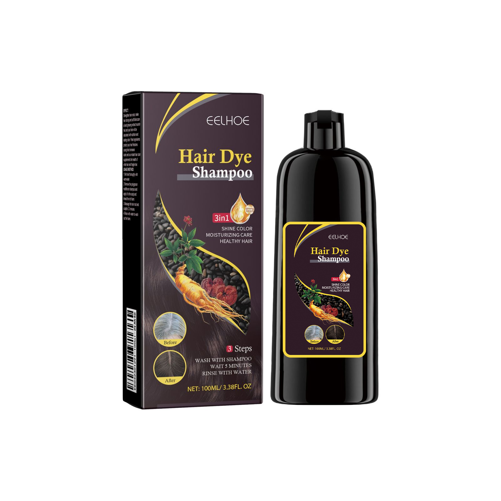 Shampoo Escurecimento Do Cabelo Com Ele Shou Wu Extrato Hidratação Profunda Reparação Couro Cabeludo 100ml Para O Ano No