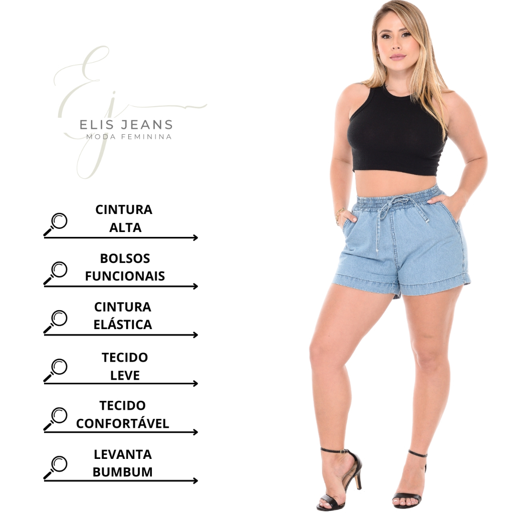 Short Jeans Feminino Cintura Alta Shorts Tecido Leve Soltinho