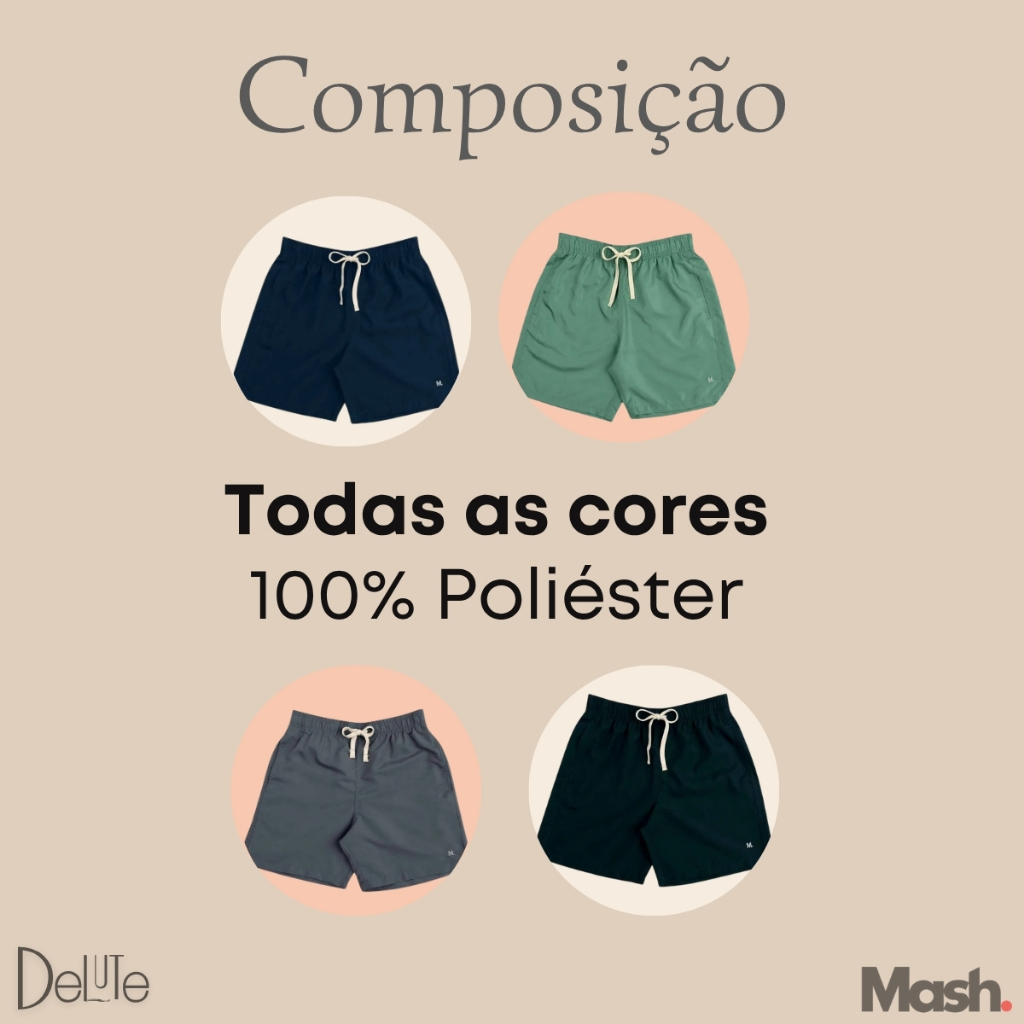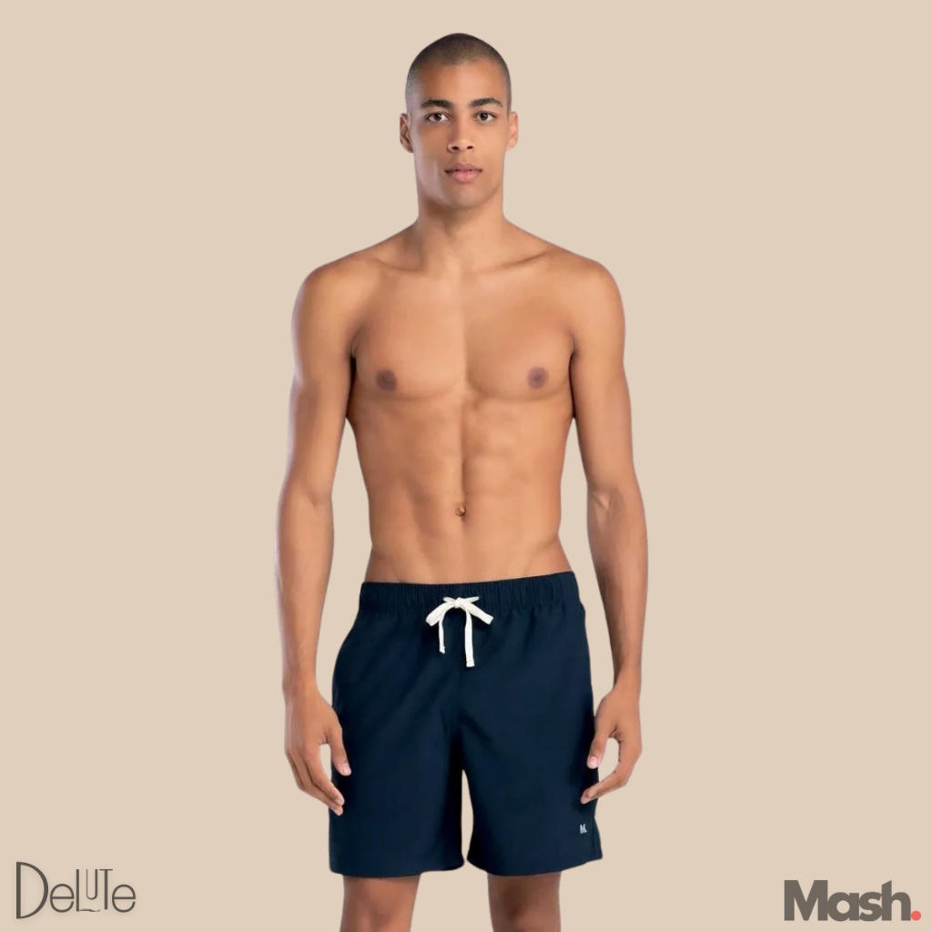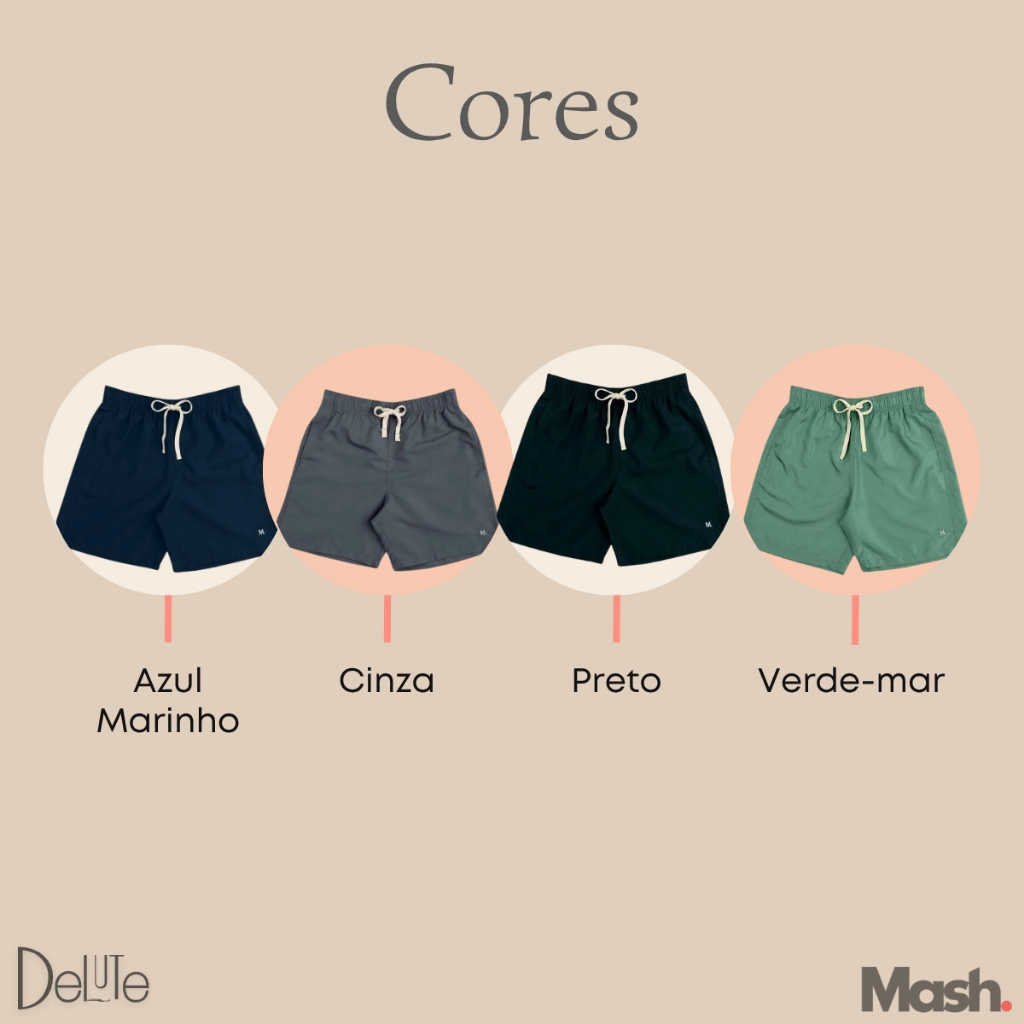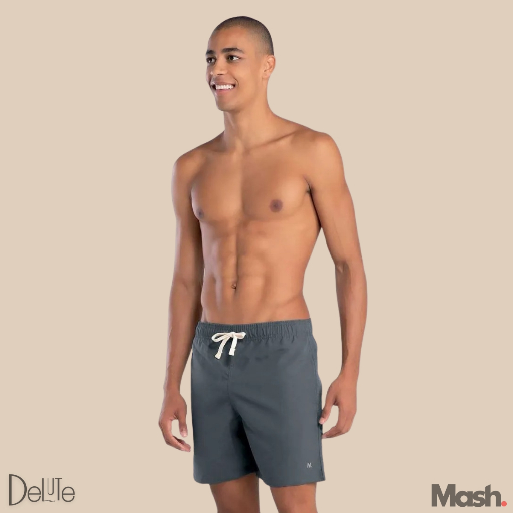 Short Masculino Casual Liso Secagem Rapida Com Bolsos E Corda Na Cintura