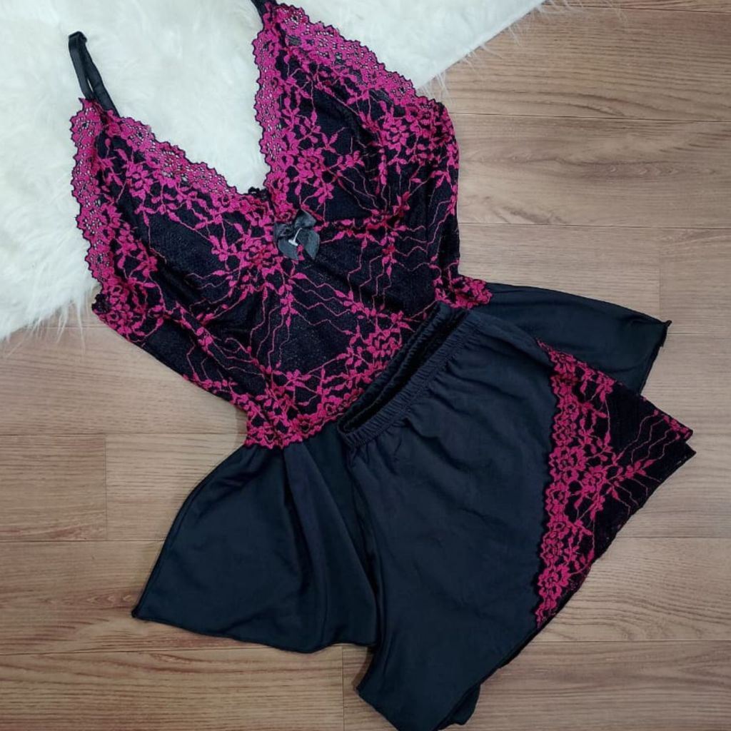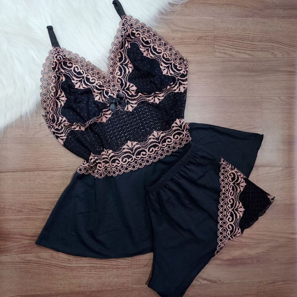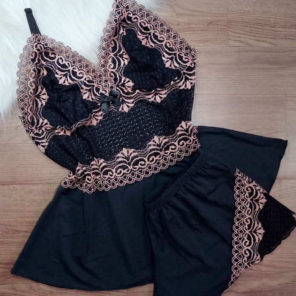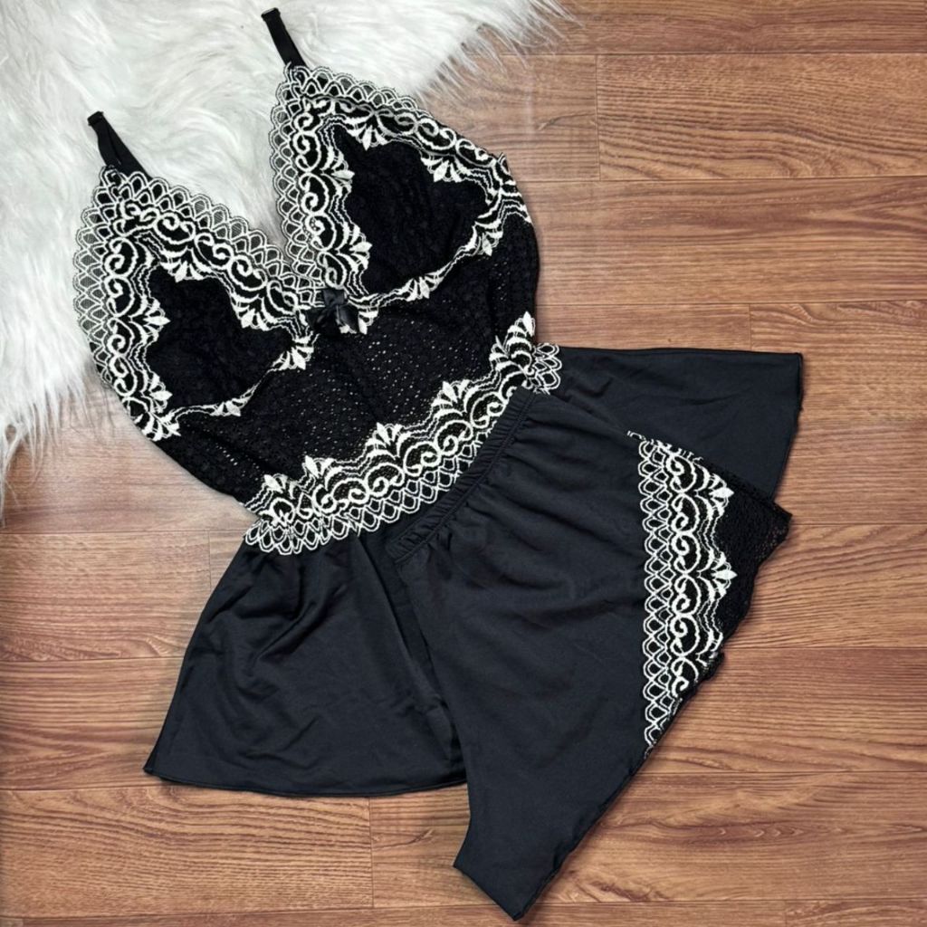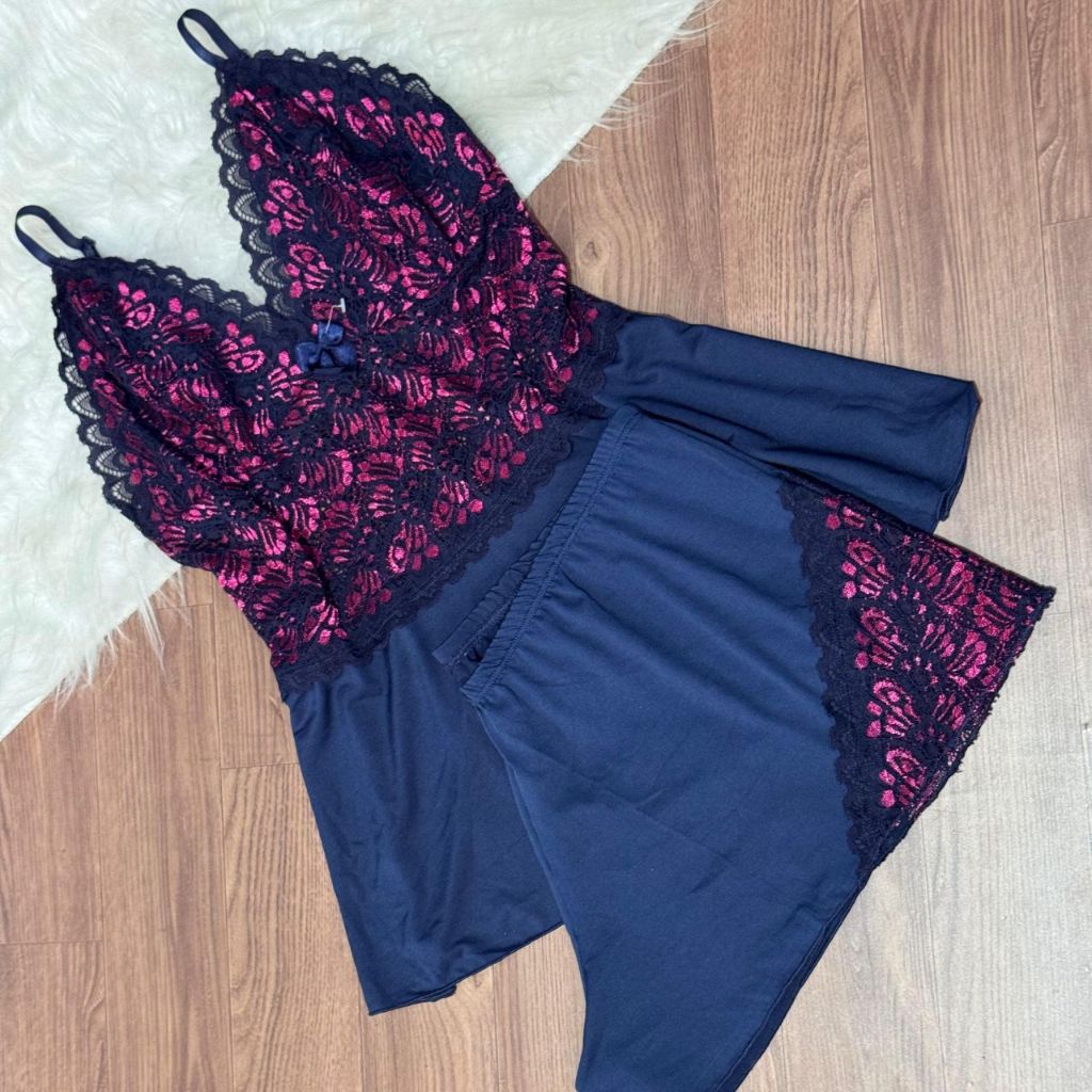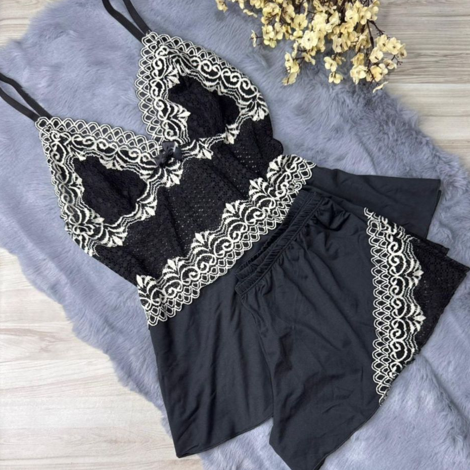 Short doll microfibra conjunto Pijama feminino baby doll rendado sexy