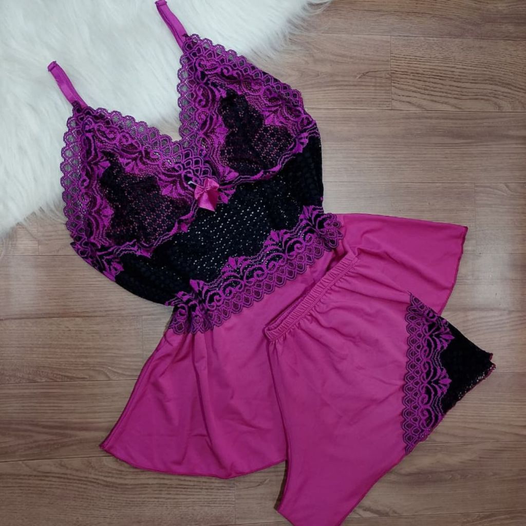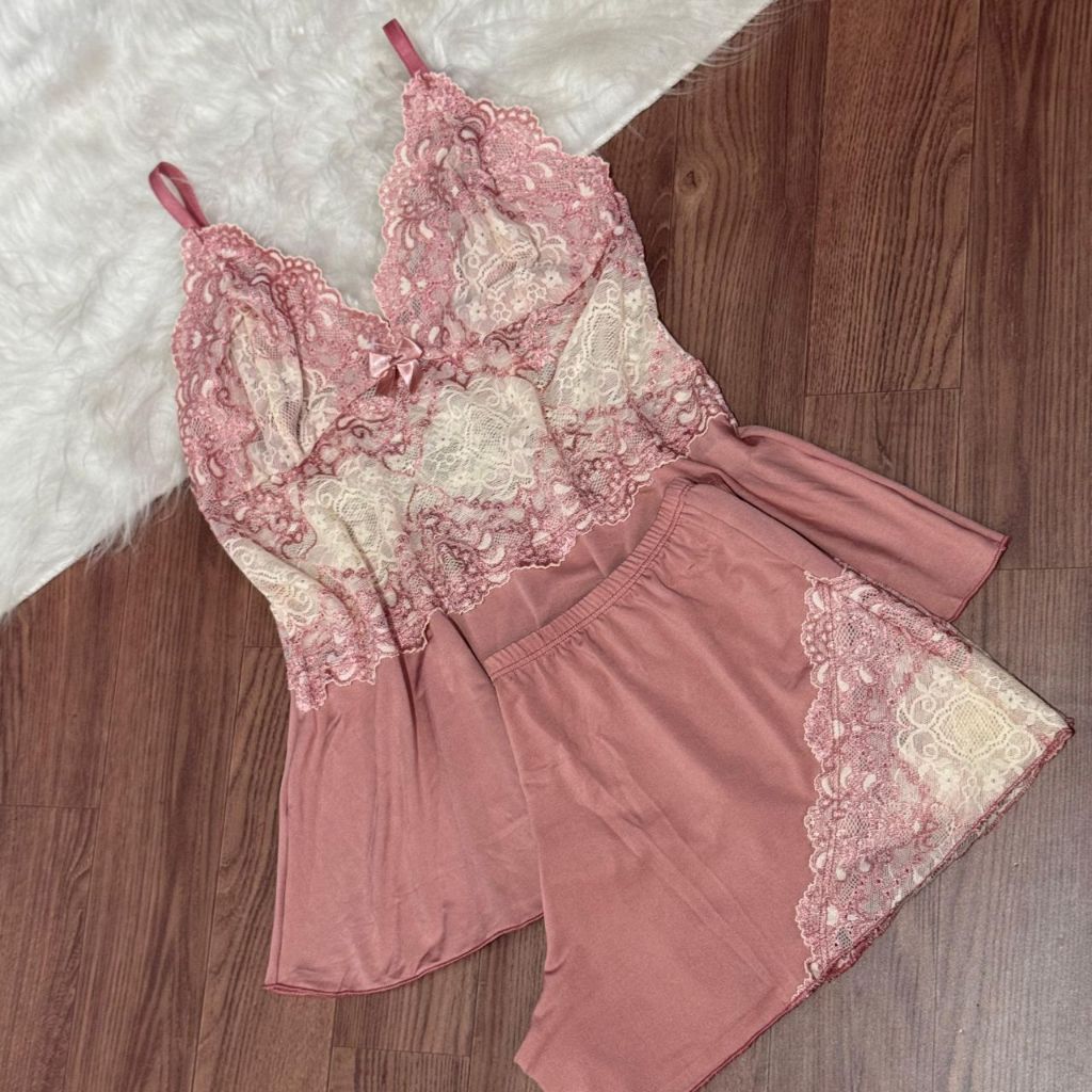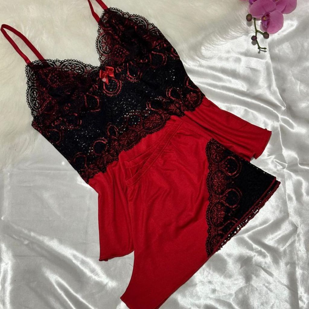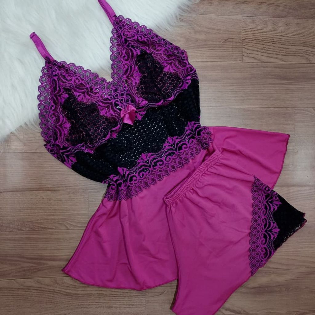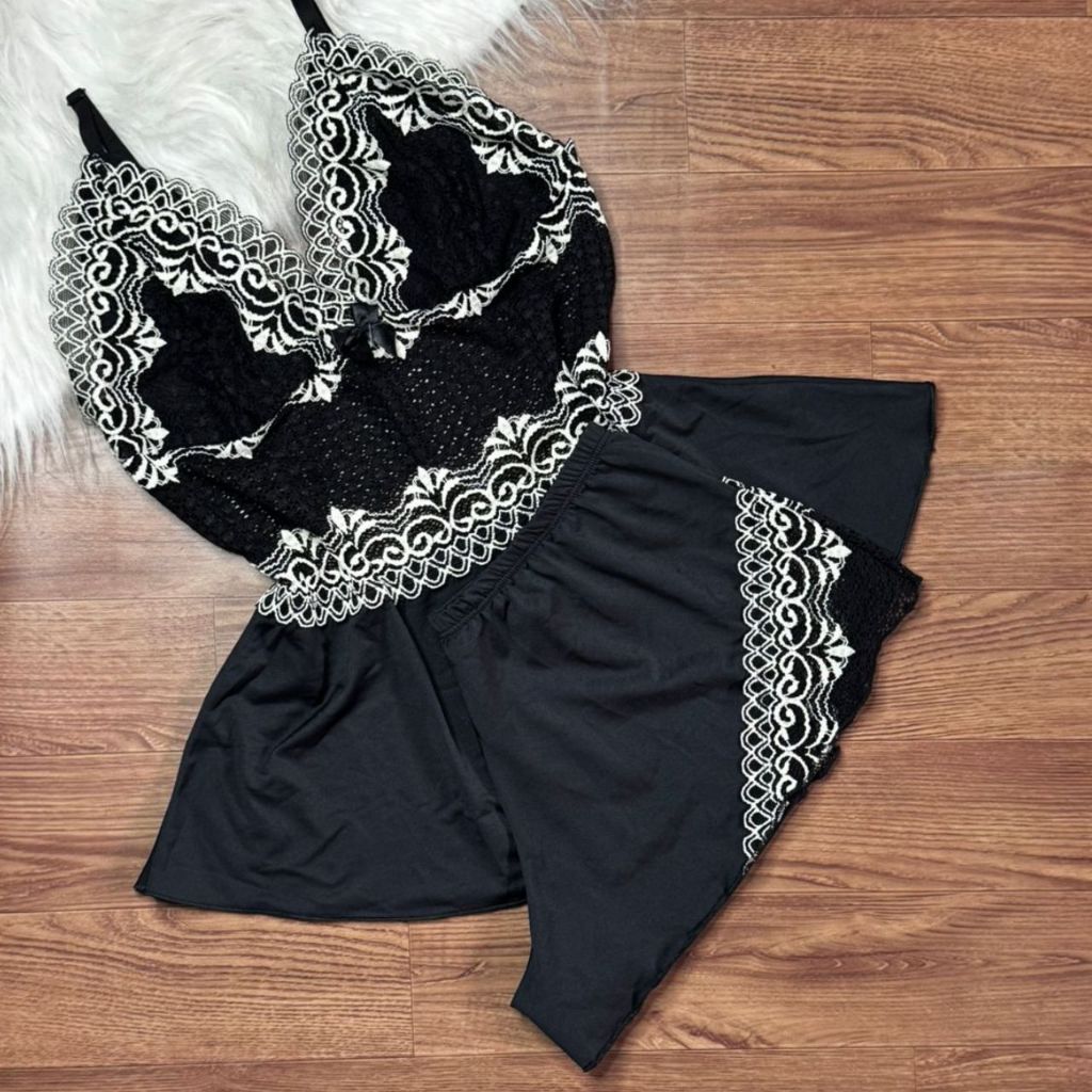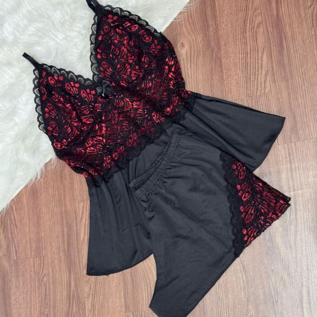 Short doll microfibra conjunto Pijama feminino baby doll rendado sexy