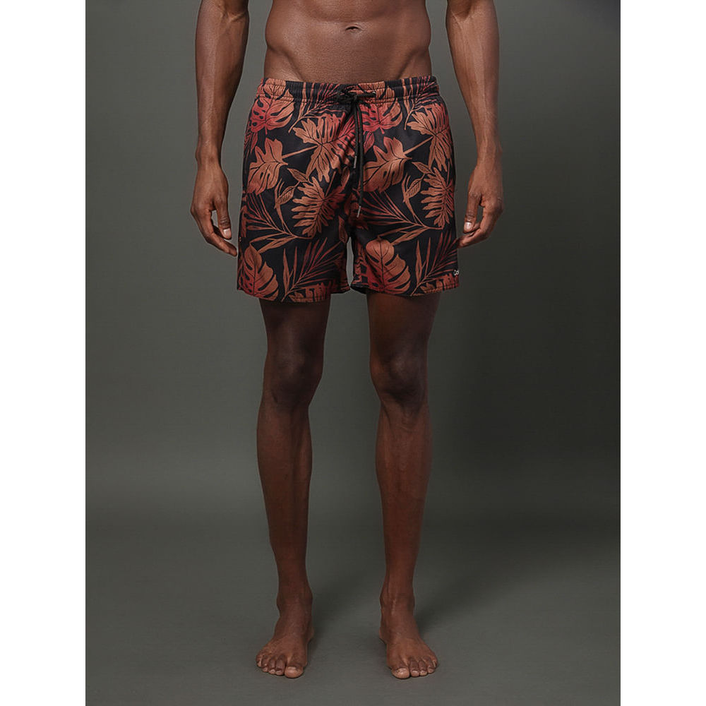 Shorts D'Água Masculino Elástico Folhas Calvin Klein Swimwear - Vermelho Escuro