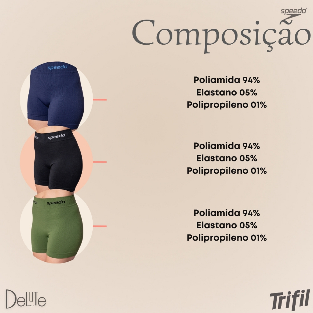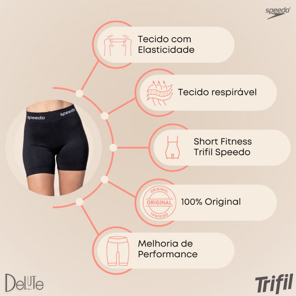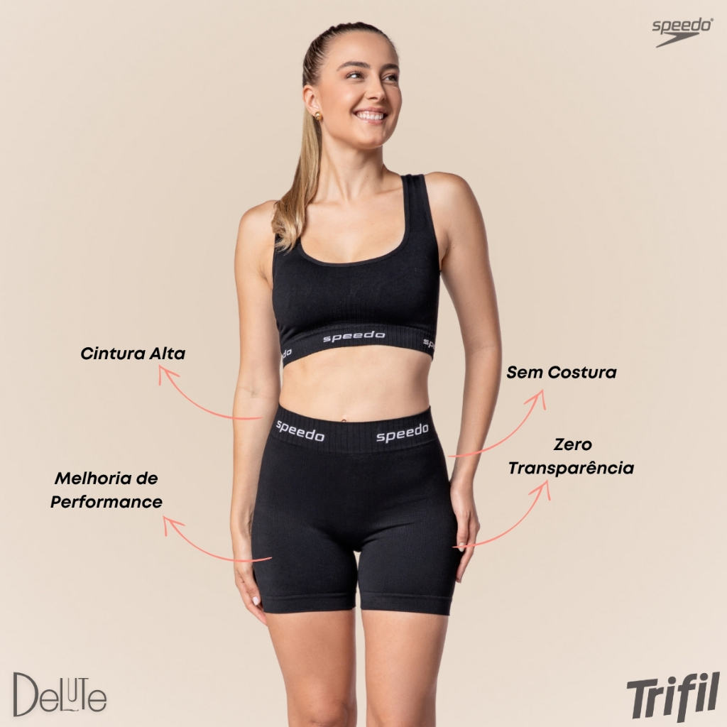 Shorts Feminino Speedo Canelado Esportivo Cós Duplo Poliamida Confortável Academia Treino