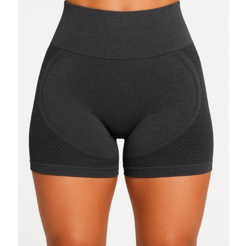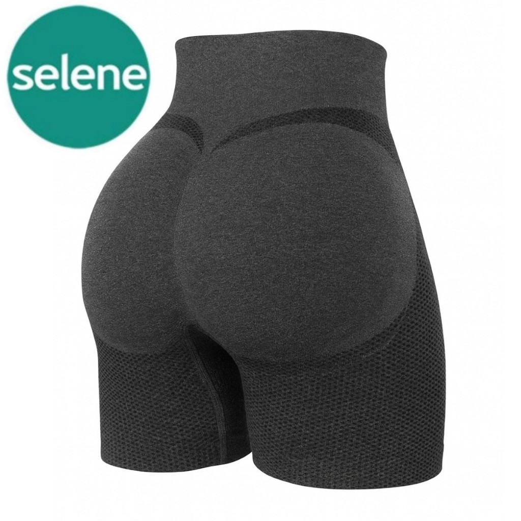 Shorts Sem Costura Selene Modelador Cintura Alta Levanta Bumbum Preto Mescla Conforto
