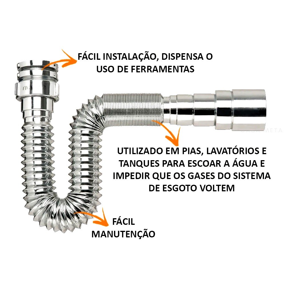 Sifão Universal Sanfonado Multiuso 66cm Cromado Tigre