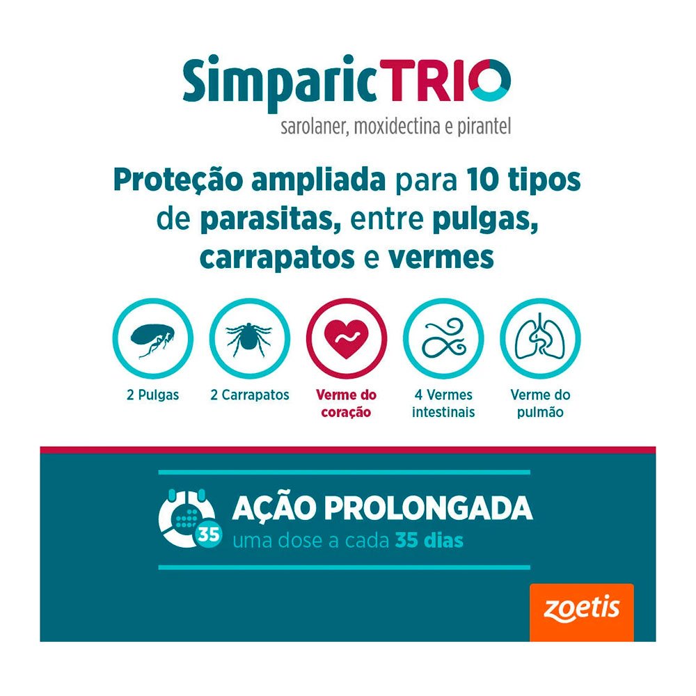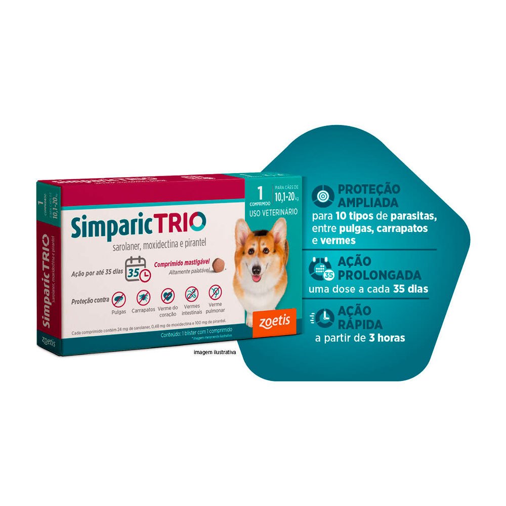 Simparic Trio 24mg Antipulgas e Carrapatos Para Cães 10,1 a 20kg 1 Comprimido