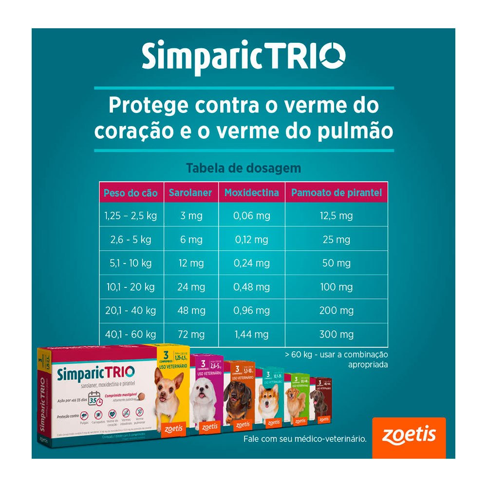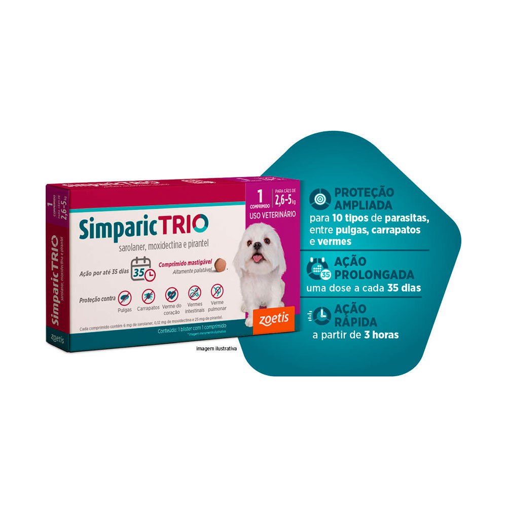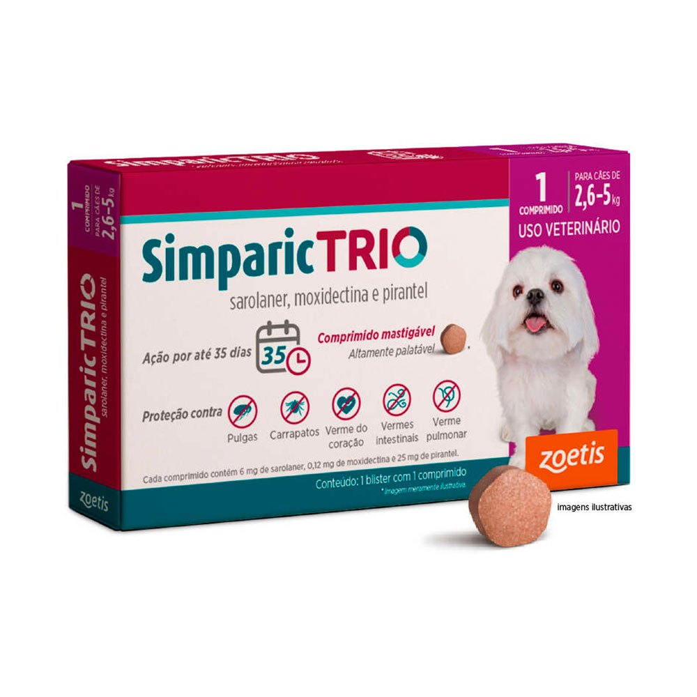 Simparic Trio 6mg Antipulgas e Carrapatos Para Cães 2,6 a 5kg 1 Comprimido
