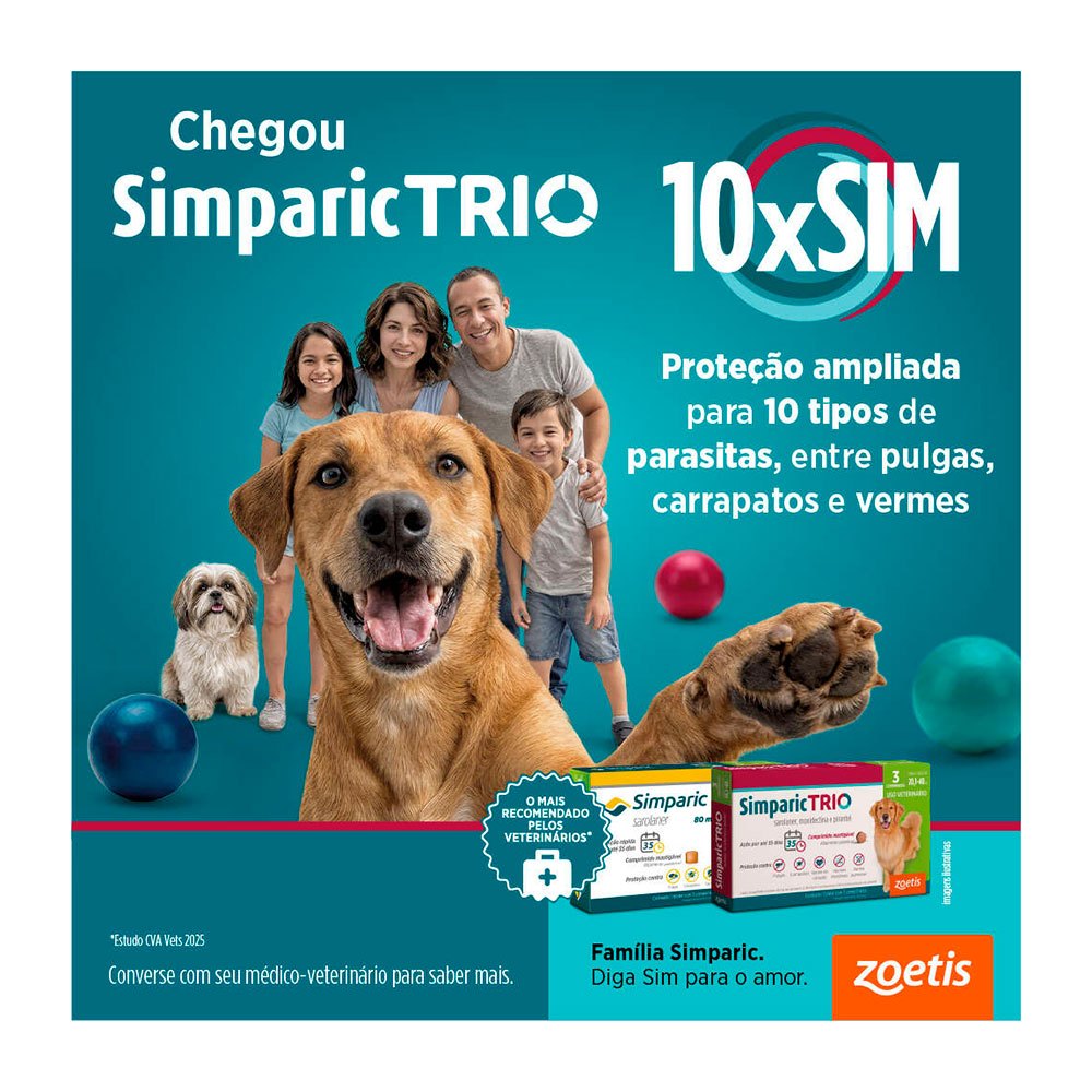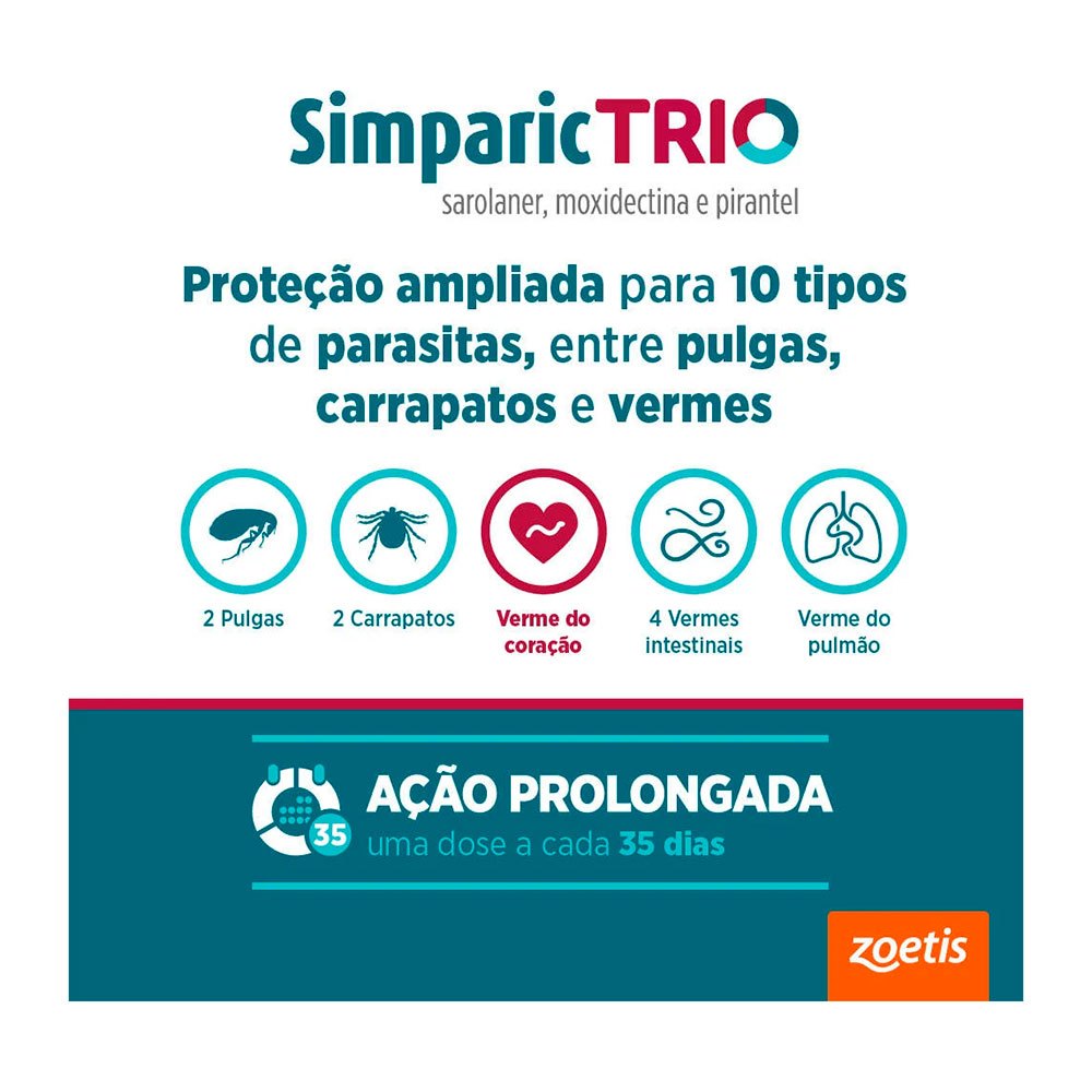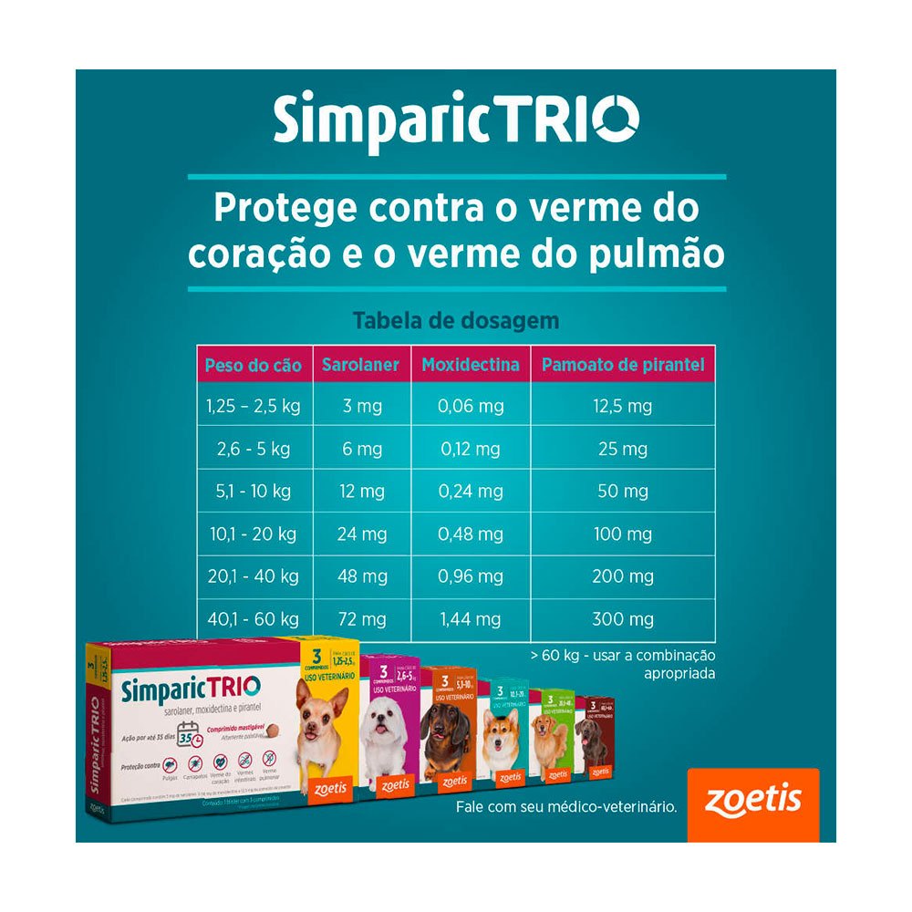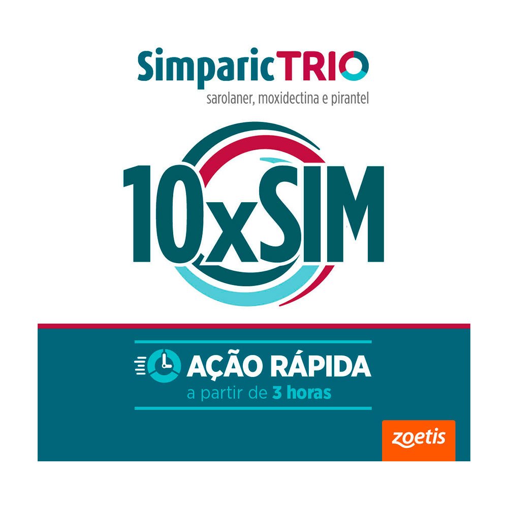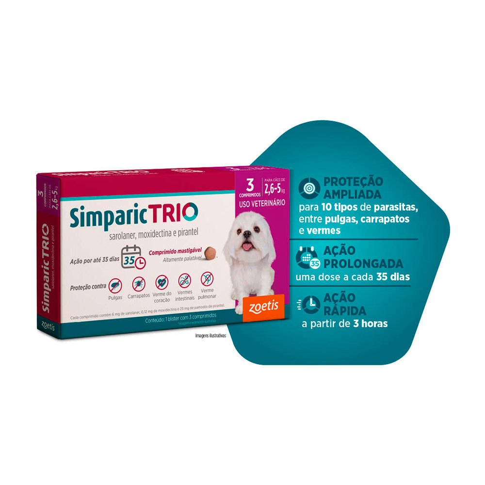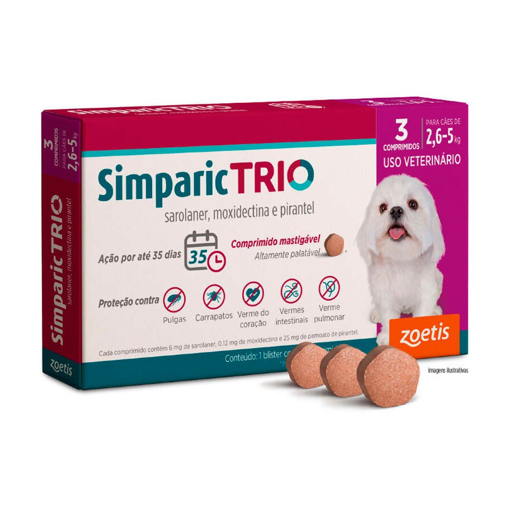 Simparic Trio 6mg Antipulgas e Carrapatos Para Cães 2,6 a 5kg 3 Comprimidos