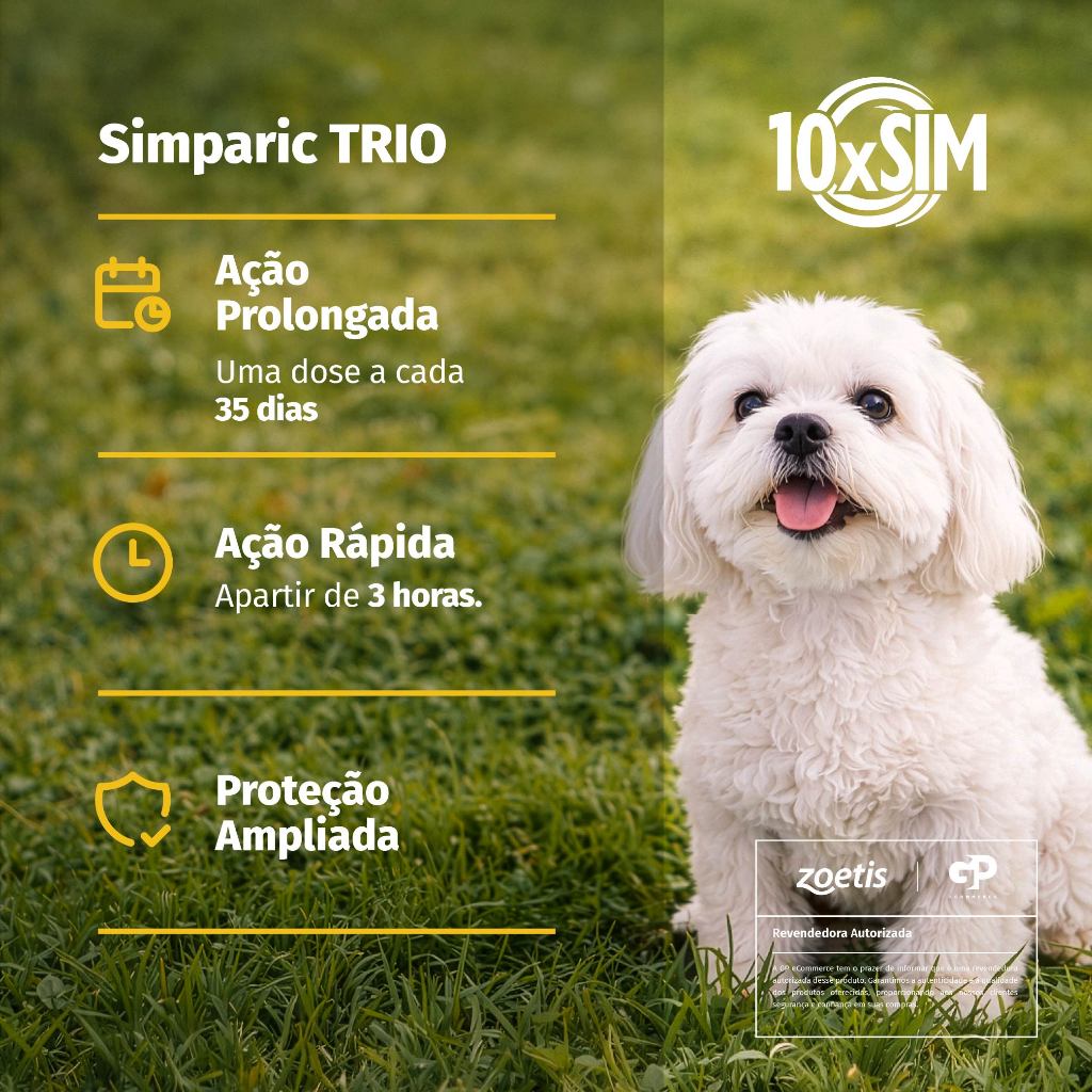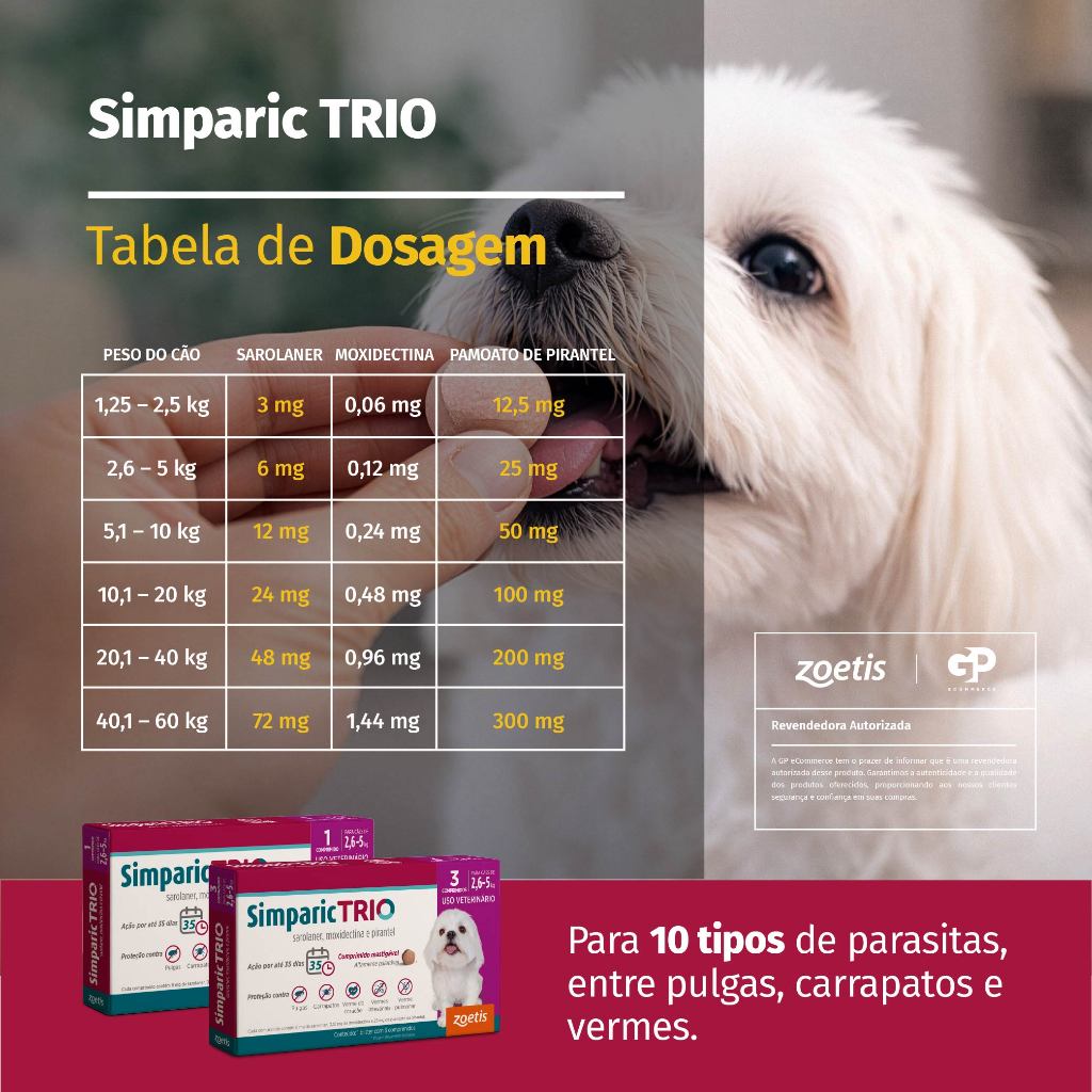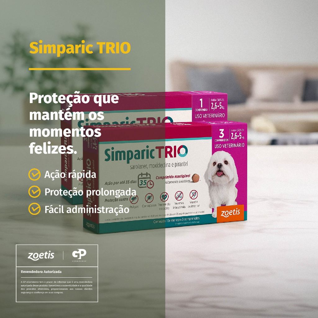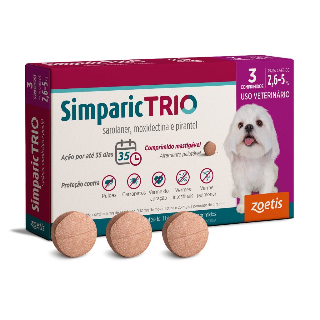 Simparic Trio Antipulgas, Carrapatos e Vermífugo para Cães de 2,6 a 5kg 3 Comprimidos 6mg Zoetis