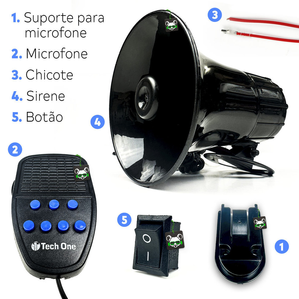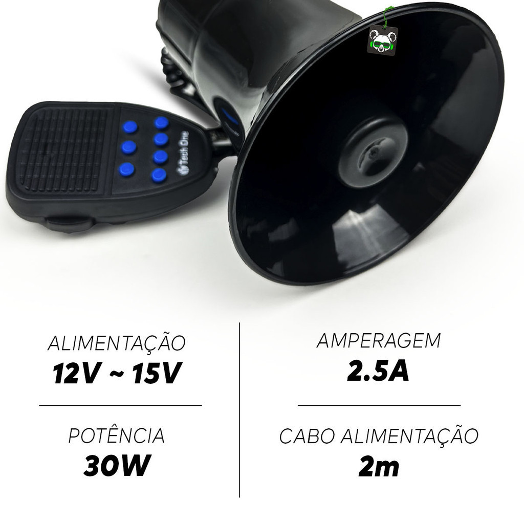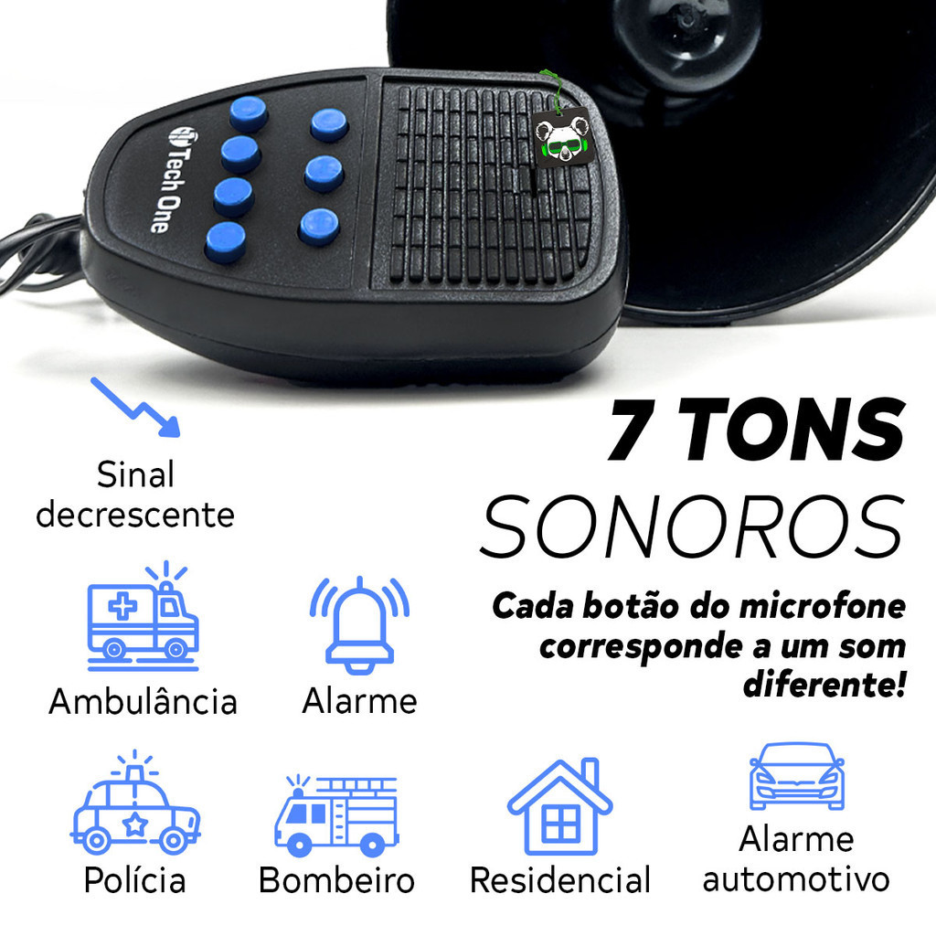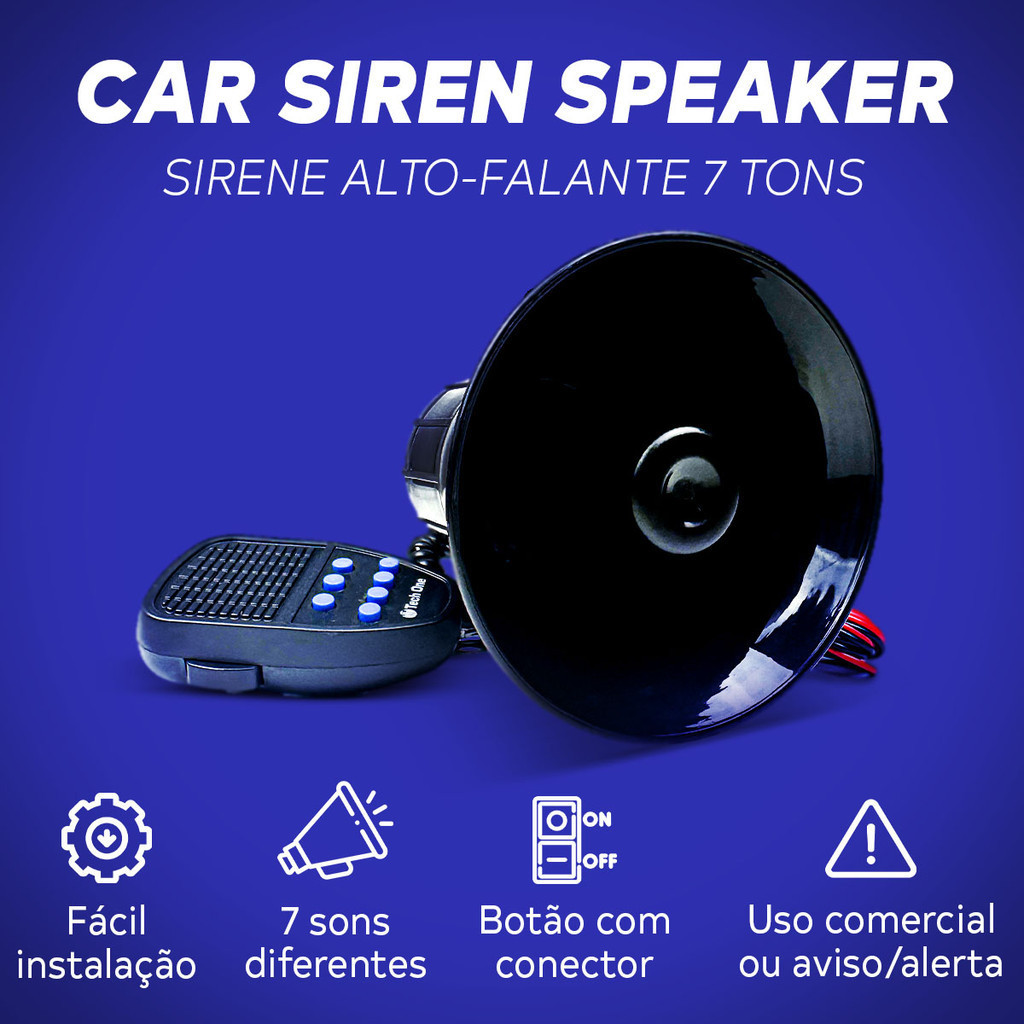 Sirene Carro Alto Falante Megafone 7 Tons Som Policia Alarme