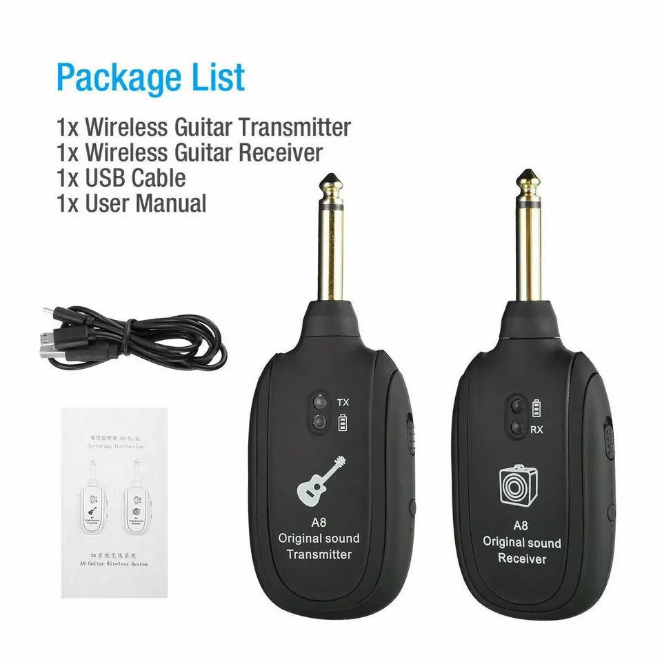 Sistema Sem Fio De Guitarra UHF A8 Com Transmissor E Receptor Recarregáveis Para Baixo Elétrica Equipamento De Áudio Pro