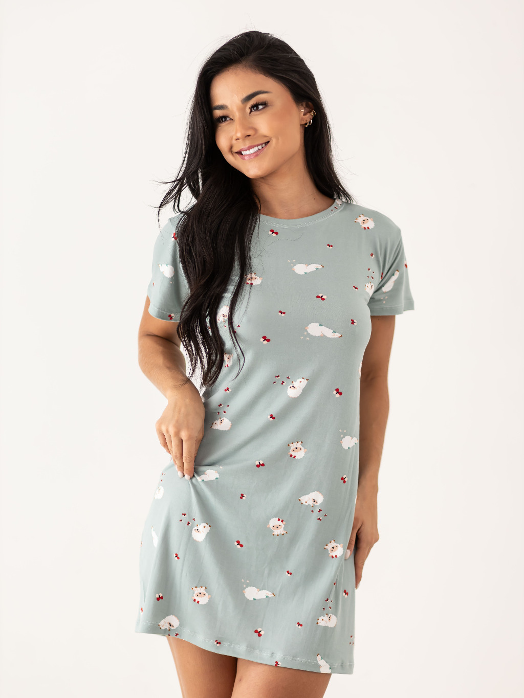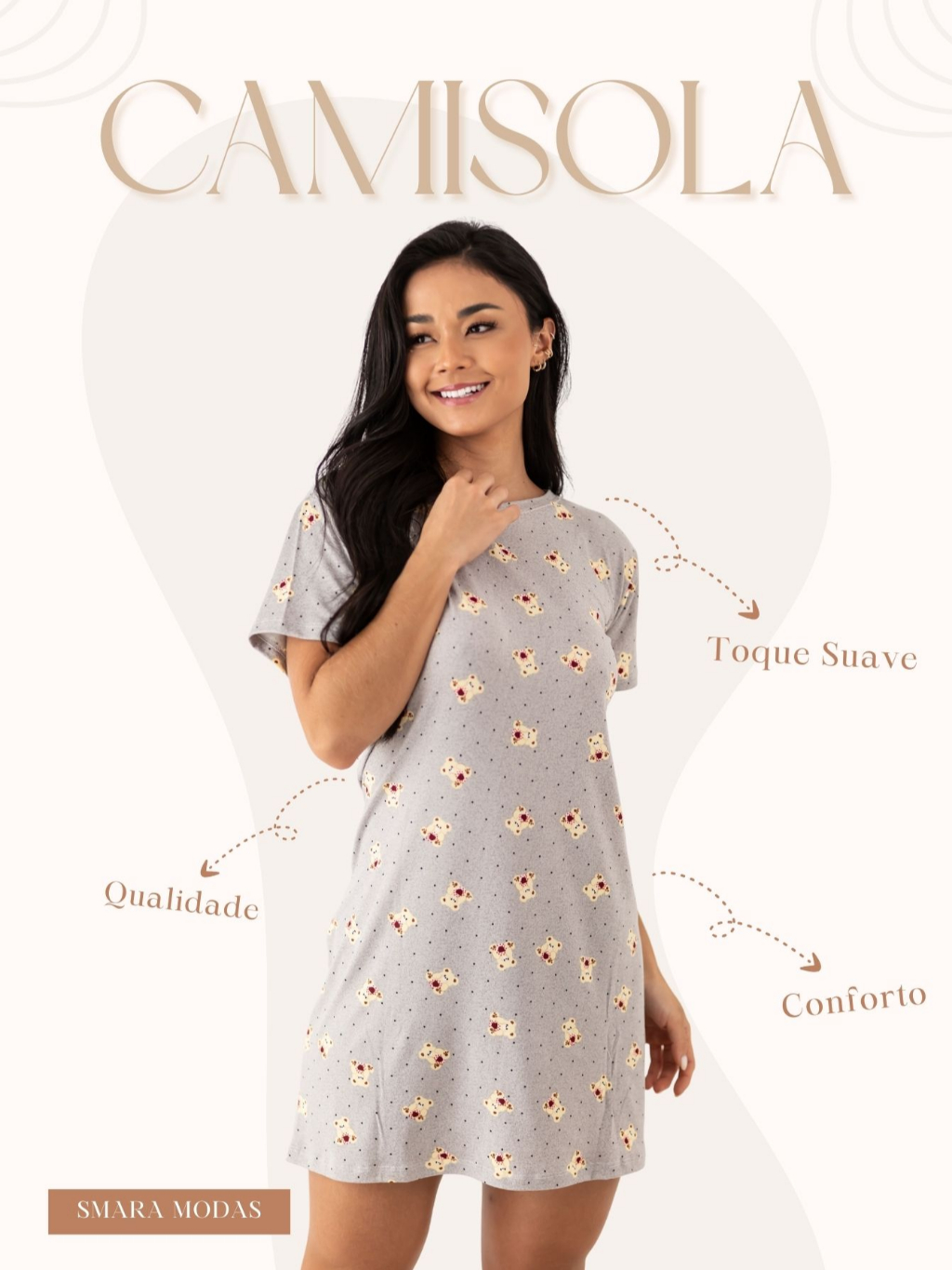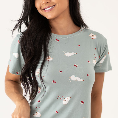 Smara Modas Camiseta Camisola Feminina Sued Primavera Verão Pijama Lançamento do M ao G1
