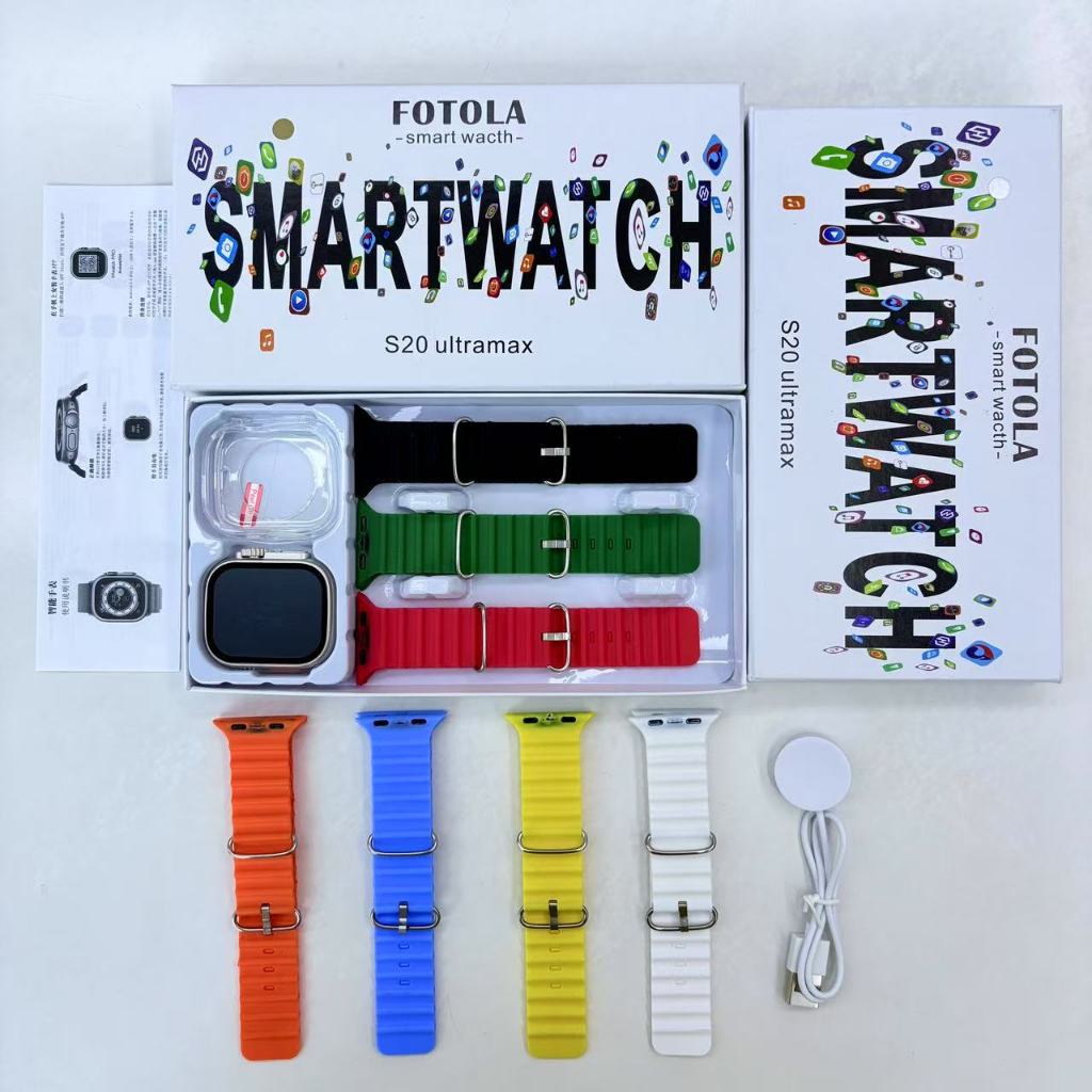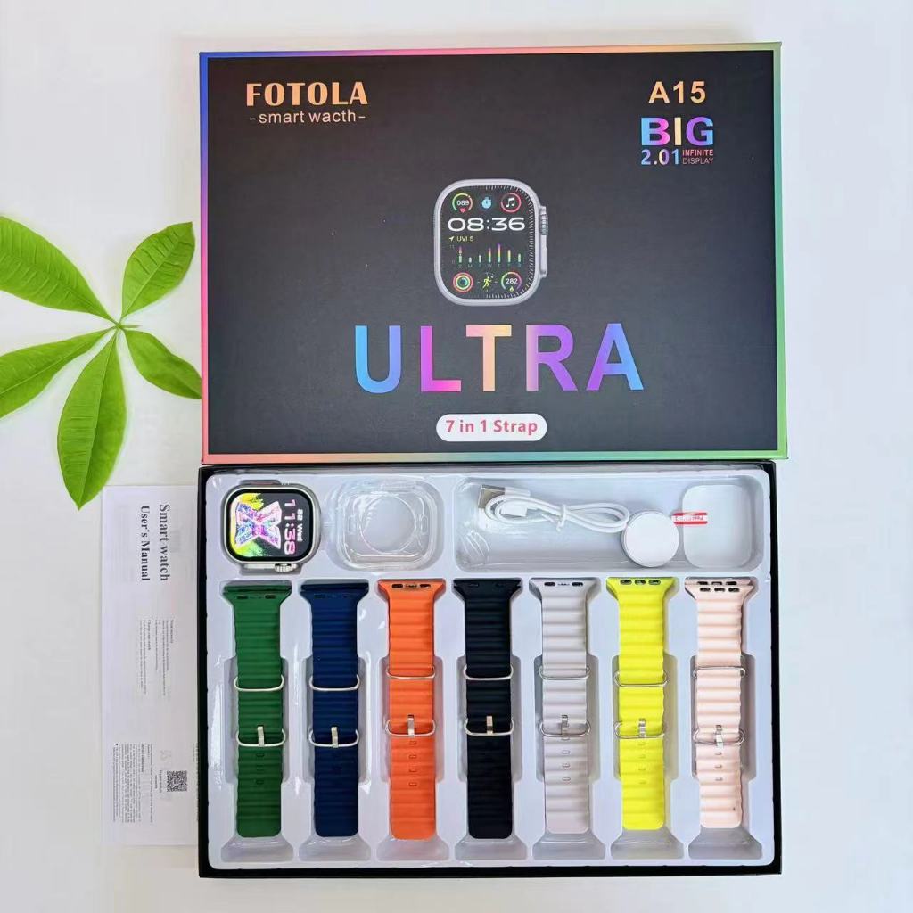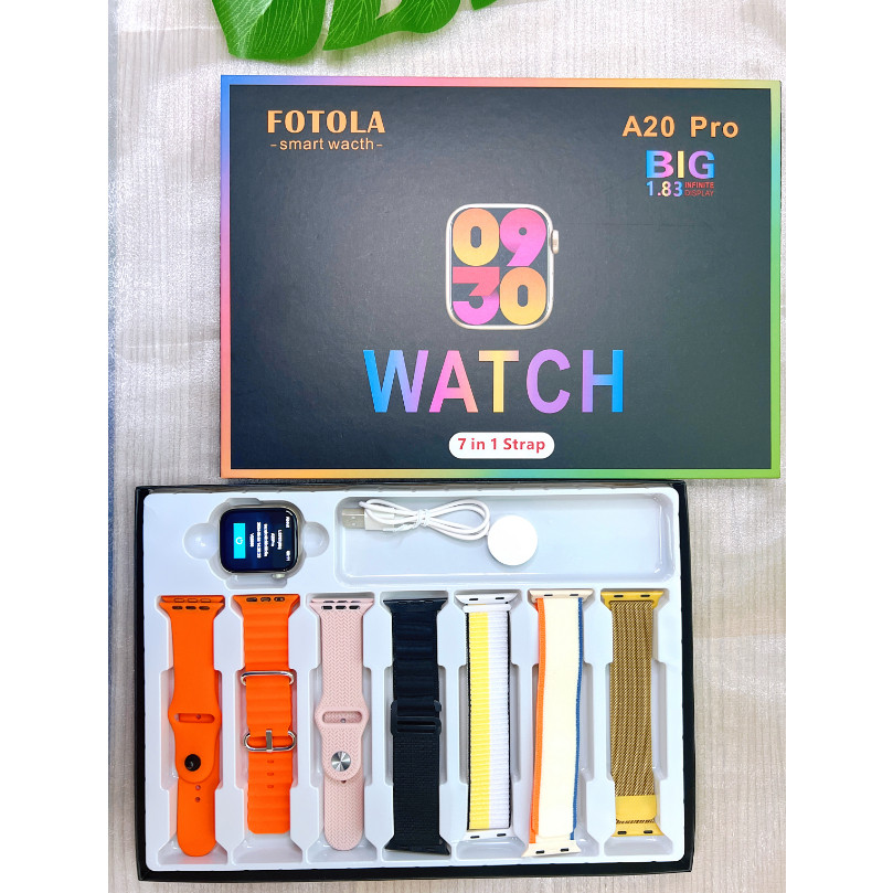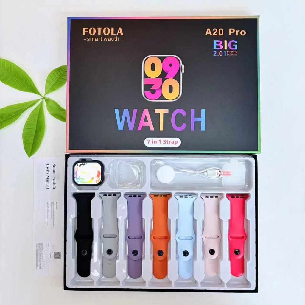 Smartwatch A20 Pro frequência cardíaca, pressão arterial modo esporte com 7 pulseiras e grande display infinito 45 mm