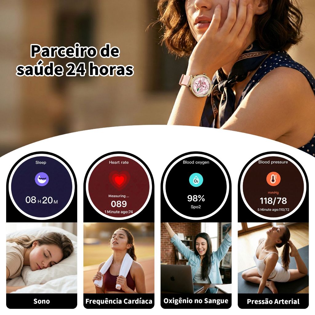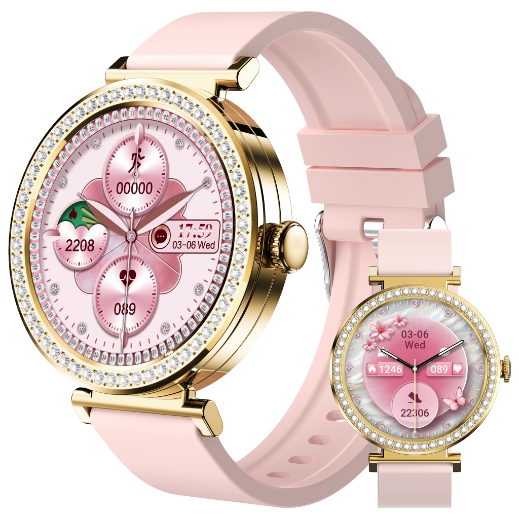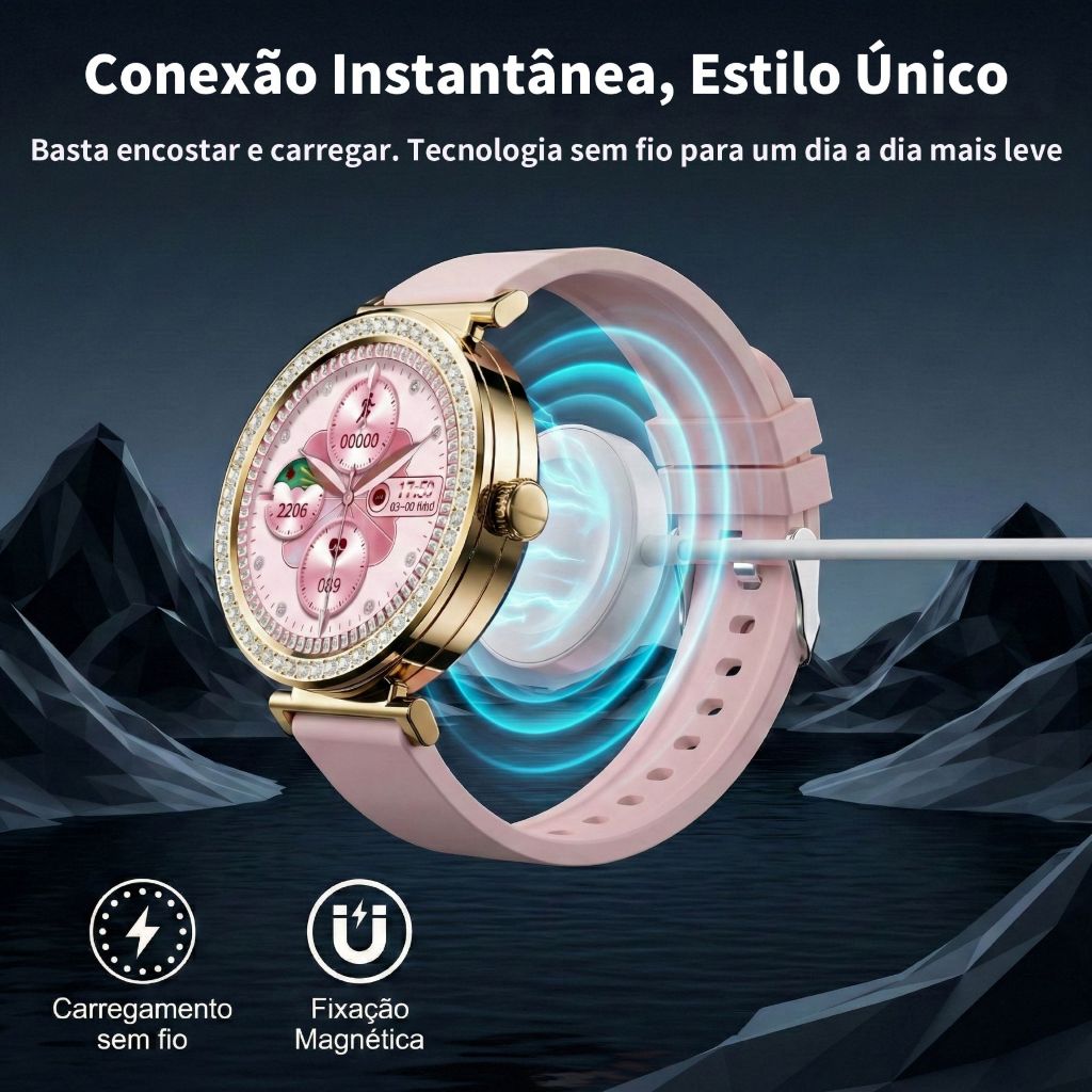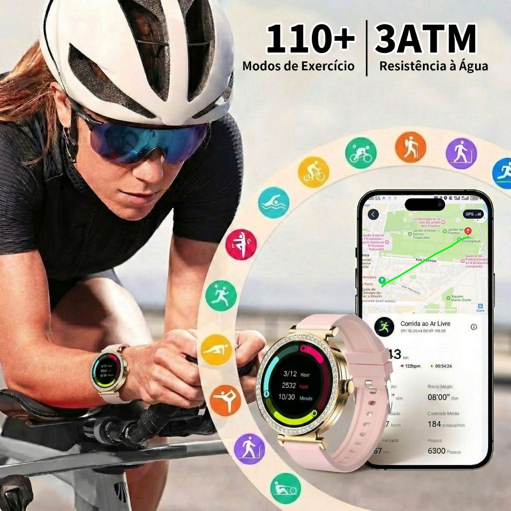 Smartwatch Feminino Dourado 1,32",Chamada Bluetooth, IP67, Monitor de Esporte/Sono, Compatível com Android/iOS.