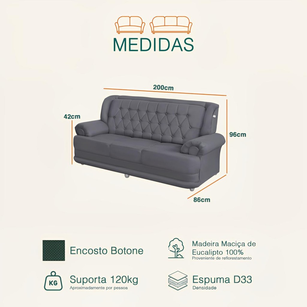 Sofá 2,00m 3 Lugares Suede Filadélfia Cinza
