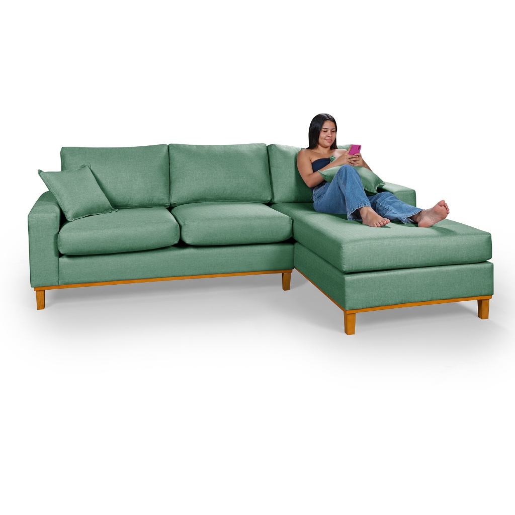 Sofá 3 Lugares Amsterdã Living Com Chaise Lado Esquerdo Em Linho
