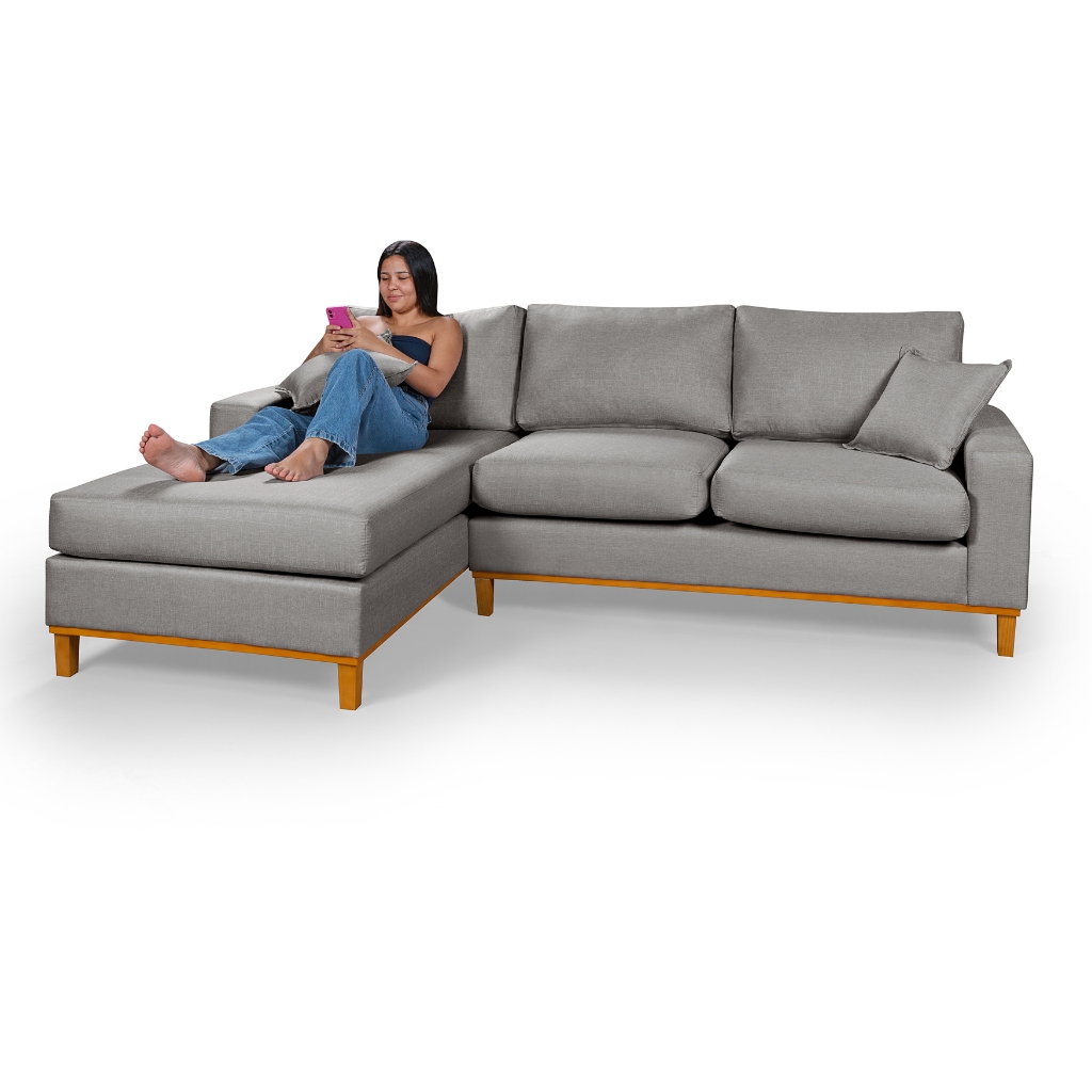 Sofá Amsterdã Living Com Chaise Lado Direito Em Linho