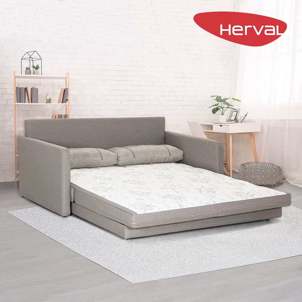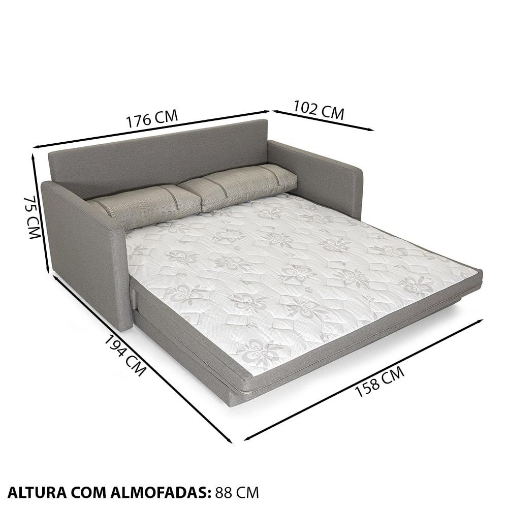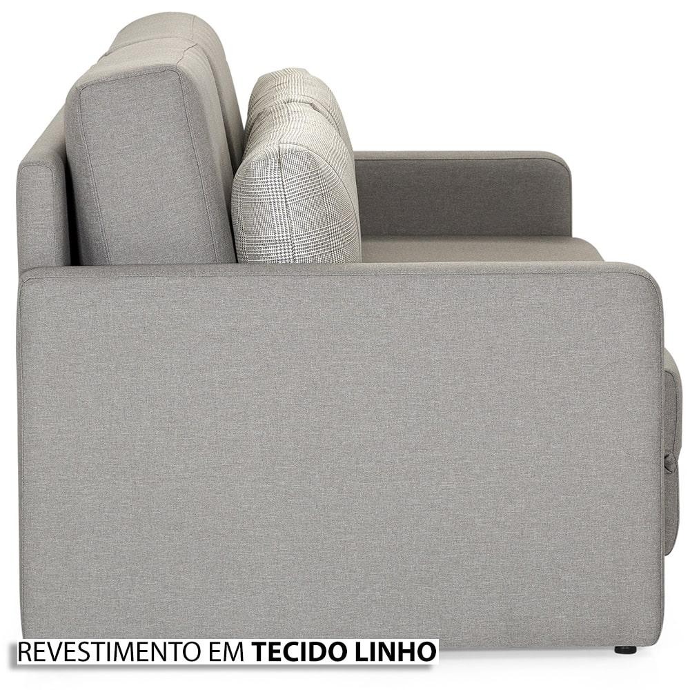Sofá-Cama 3 Lugares Queen Herval Aurora, Linho Cinza, 176 cm