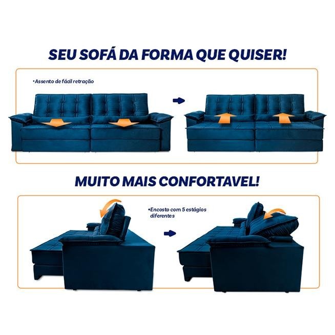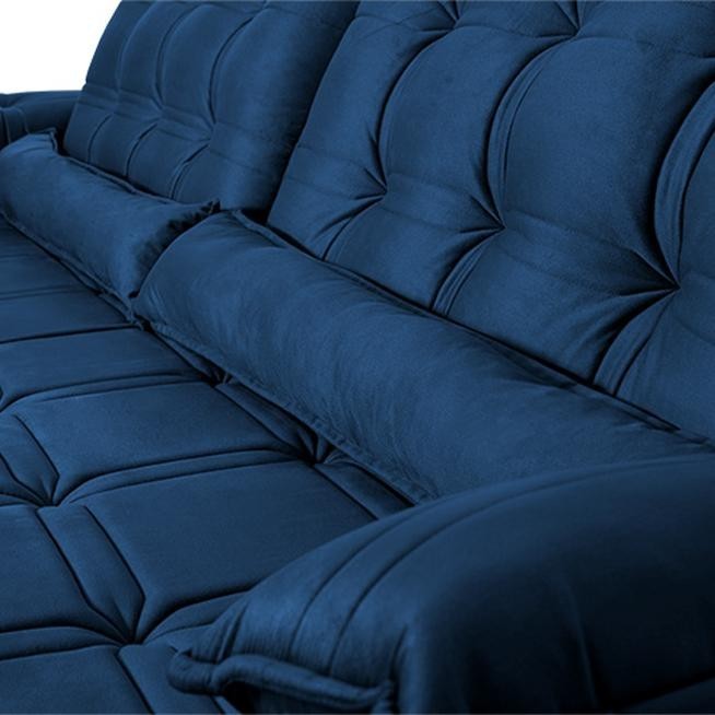 Sofá Retrátil Reclinável 3,00m Ascari Suede Velut Azul Marinho molas Ensacadas - King House