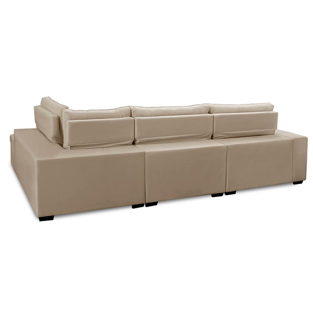 Sofá de Canto Retrátil e Reclinável com Molas 3,00x2,00 Jacke Suede Bege Adonai Estofados
