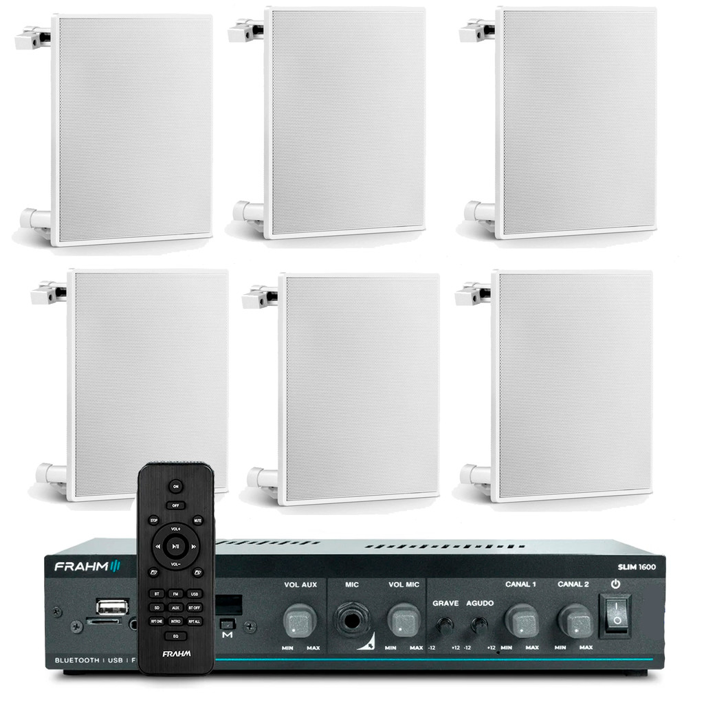 Som Ambiente Frahm + 6 Arandelas Teto Gesso + Receiver Bluetooth - Frahm