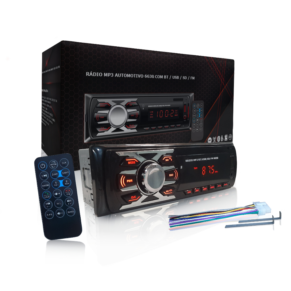 Som Automotivo Rádio para Carro Pendrive USB Bluetooth Leitor Cartão SD RCA Controle Longa Distância