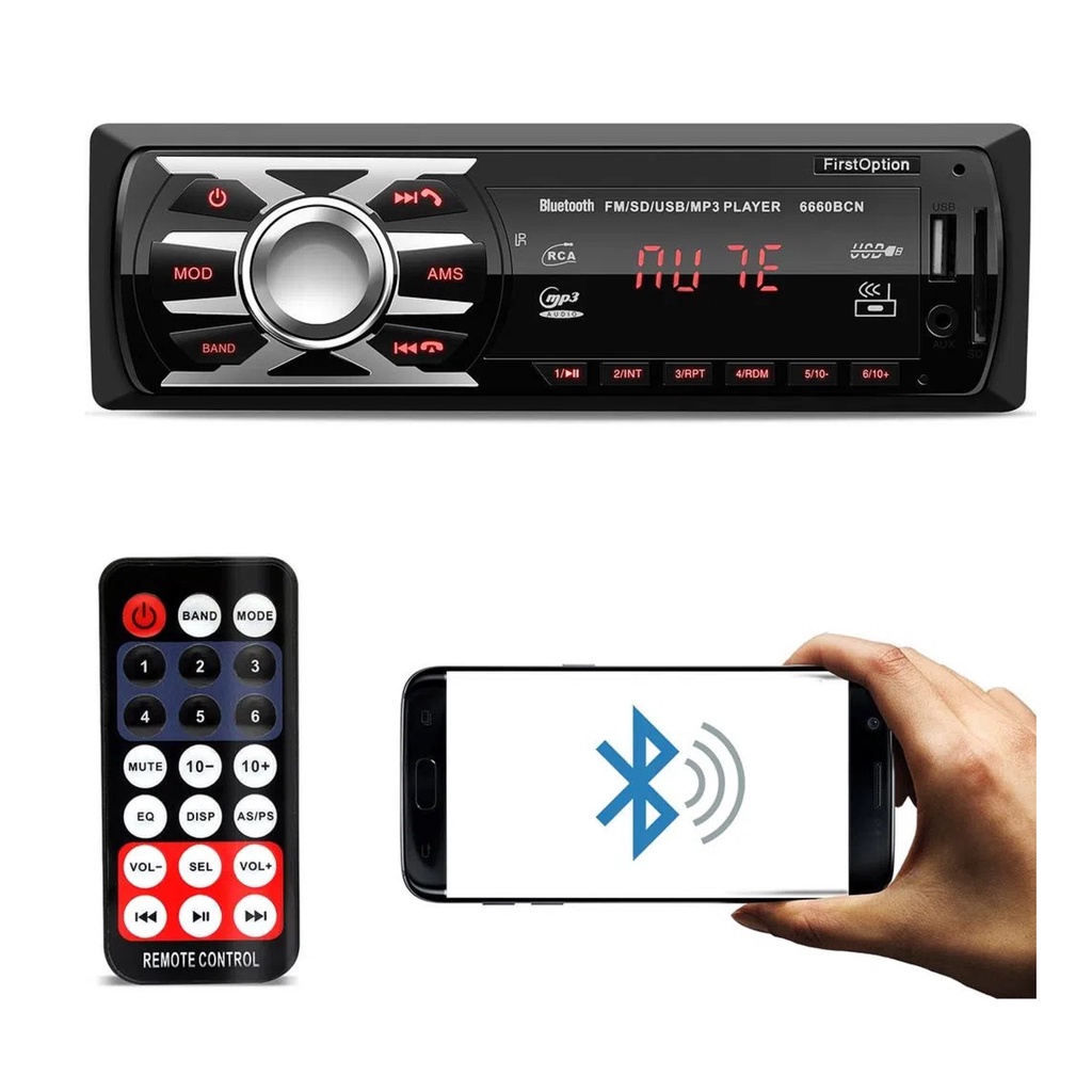 Som Para Carro Automotivo Com Bluetooth Mp3 Usb 1 Ano Garantia