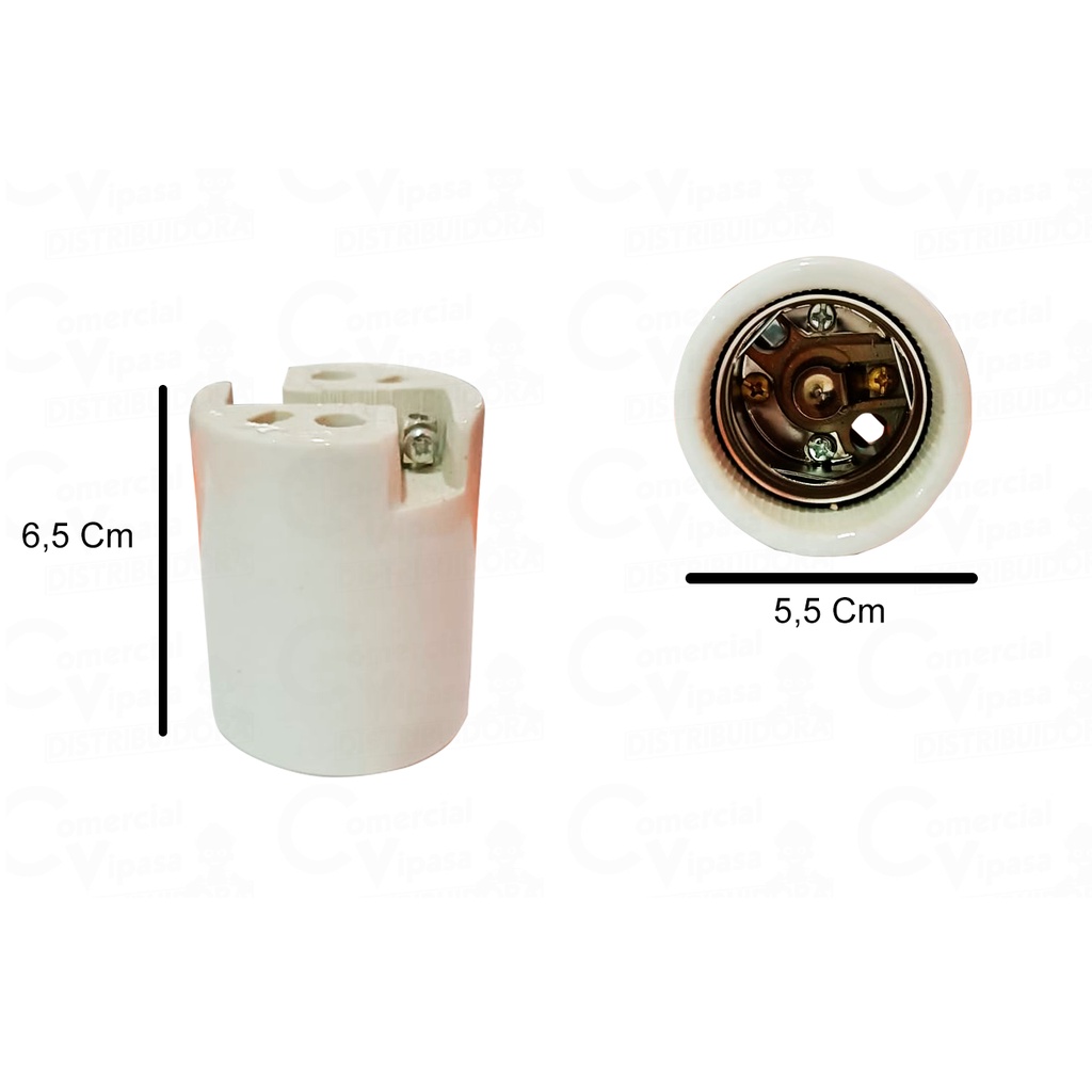 Soquete Bocal Adaptador Porcelana Sem Rabicho Para Lâmpadas E27 P E40 4A e 6A/0-250V e 0-500V Decorlux