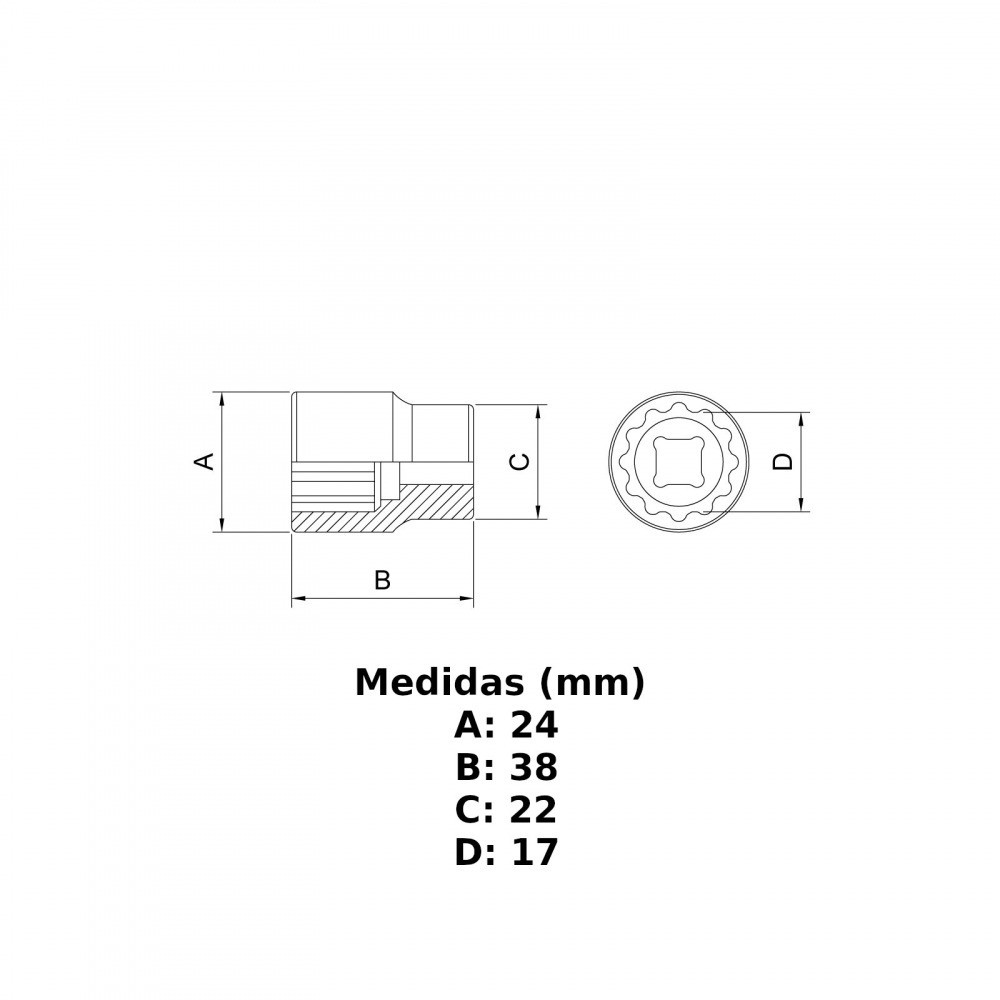 Soquete sextavado 17 mm encaixe 1/2" aço cromo vanádio - Tramontina