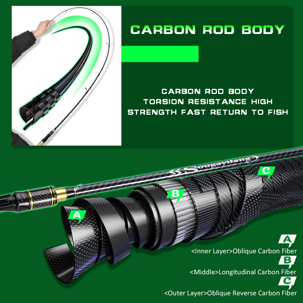 Sougayilang 1.8m Conjunto De Linha De Carretel De Vara De Pesca De Carbono 6 Pés 18 + 1BB Relação De Engrenagem 7.2 : 1