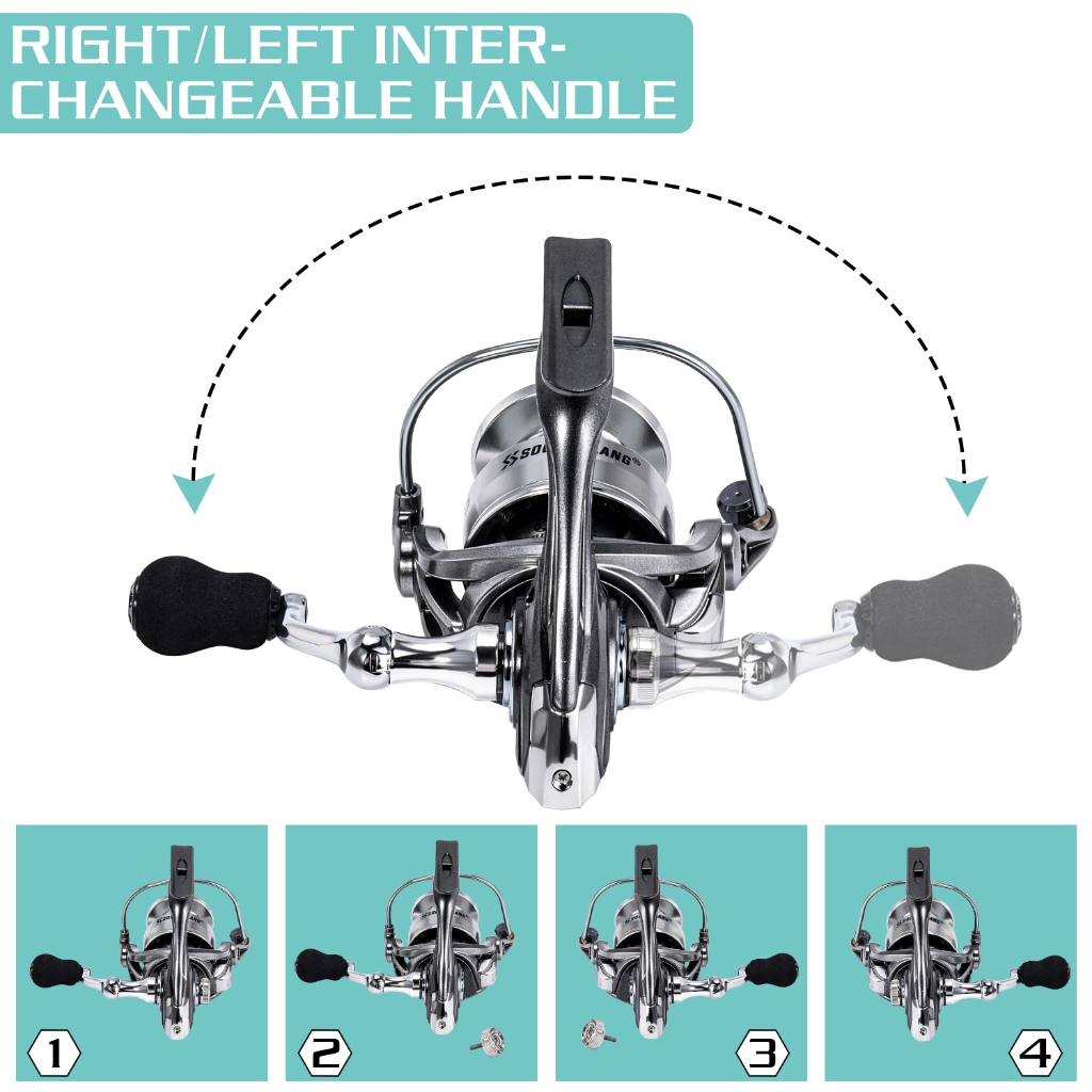 Sougayilang 1000-4000 Relação De Engrenagem 5.2 : 1 Alta Velocidade 17.6 LBS Carretel Giratório De Pesca Opcional Com Al