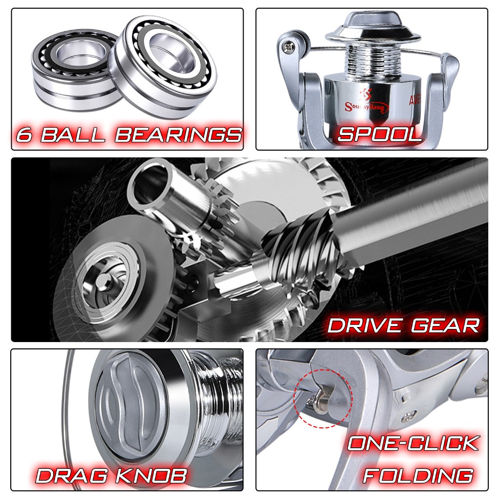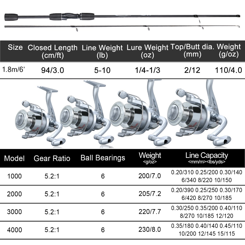 Sougayilang 2 Seções 1.8M Haste De Fibra De Carbono EVA Vara Giratória Com Relação De Engrenagem 1000-4000 5.2 : 1 Carre