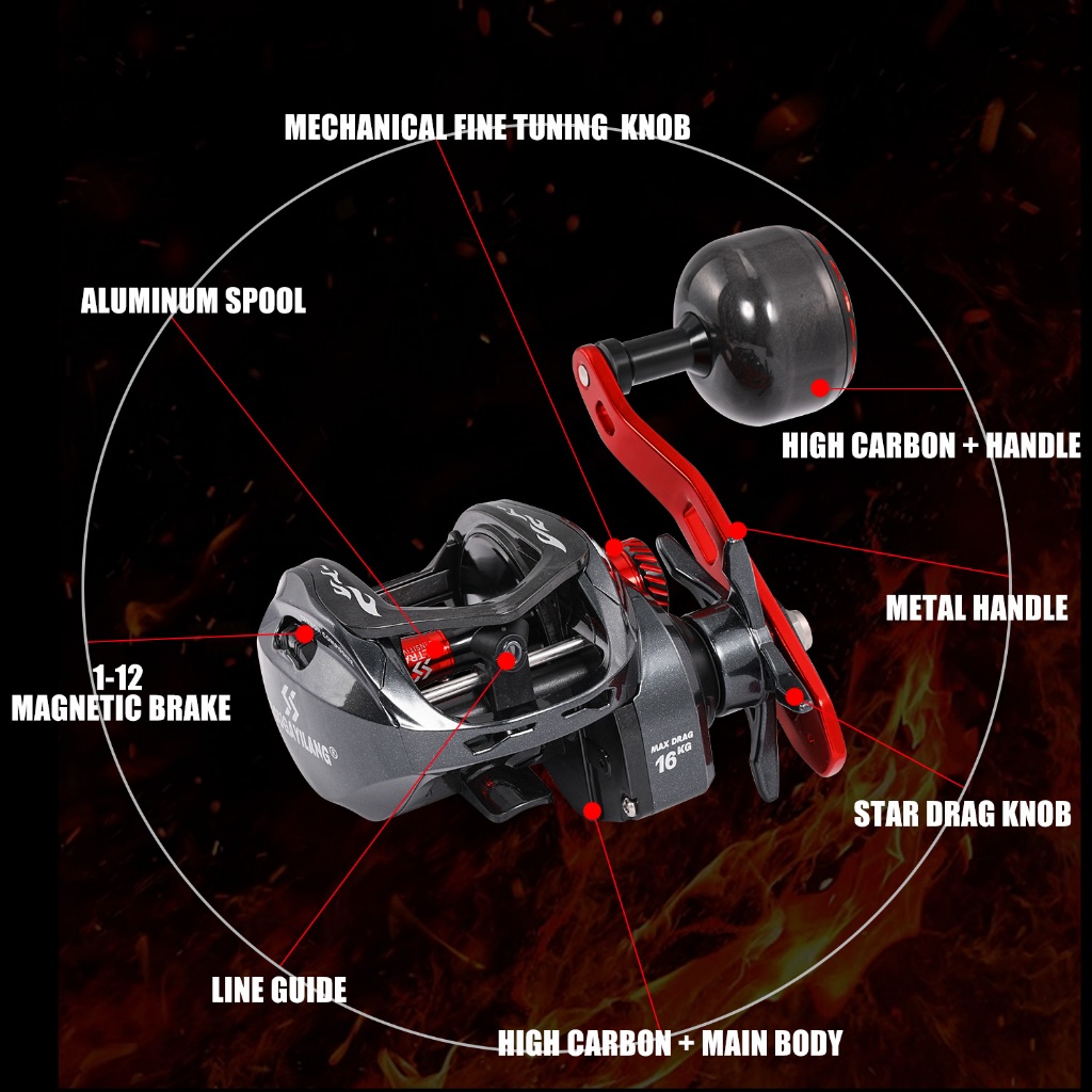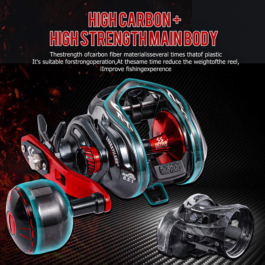 Sougayilang Carretel De Pesca De Fundição 9 + 1BB Relação De Engrenagem De Alta Velocidade 6.5 : 1 Freio Magnético Para