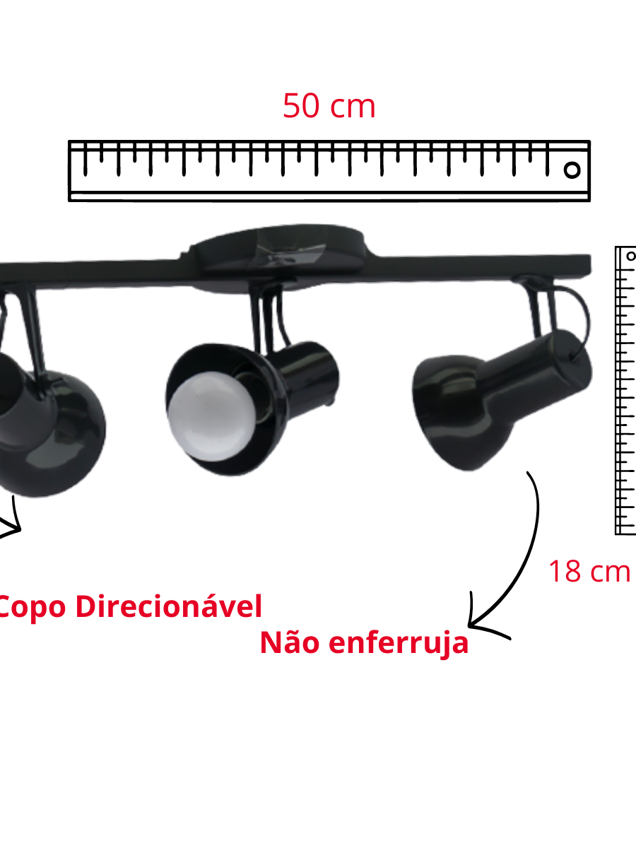 Luminaria Spot Trilho Triplo Led para 3 Lampadas Preto premium