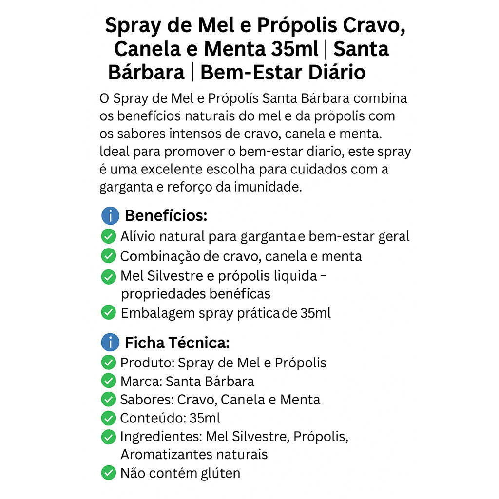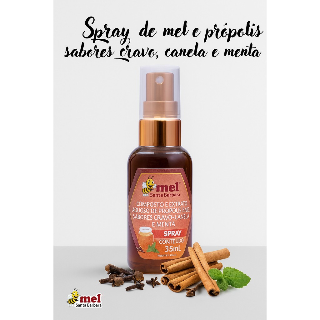 Spray de Mel e Própolis Cravo, Canela e Menta 35ml | Santa Bárbara | Refrescante e Natural para Garganta