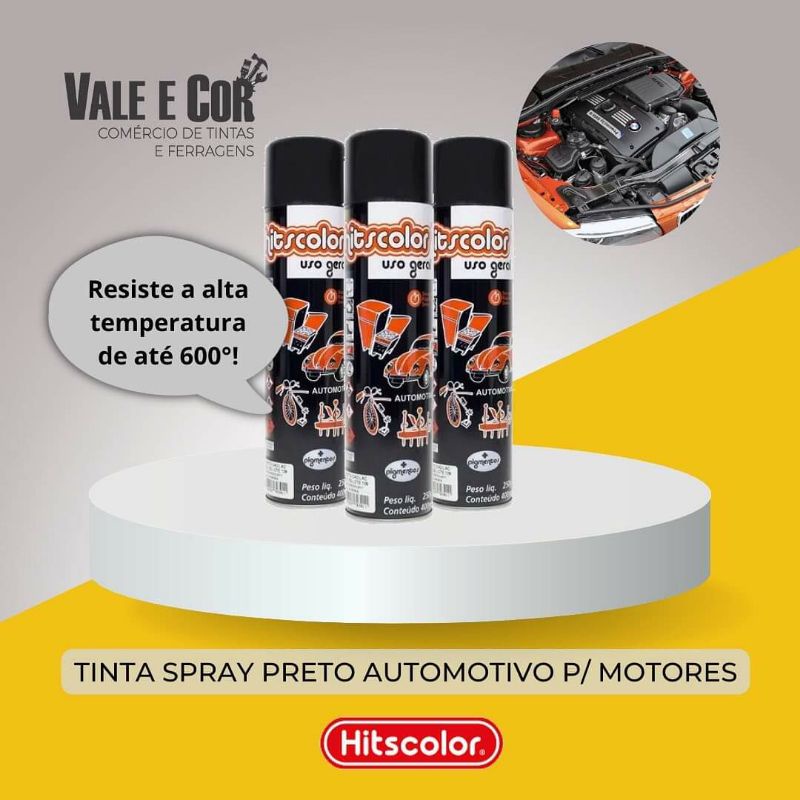 Spray preto automotivo motores 3 un de 400ml