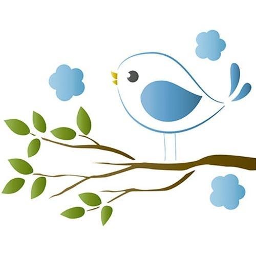Stencil Litoarte 10 x 10 cm - ST-X-089 Pássaro Galho